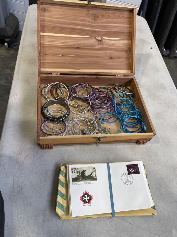 VINTAGE WAR ENEVELOPS AND JEWLLERY BOX W/ BRACELETS