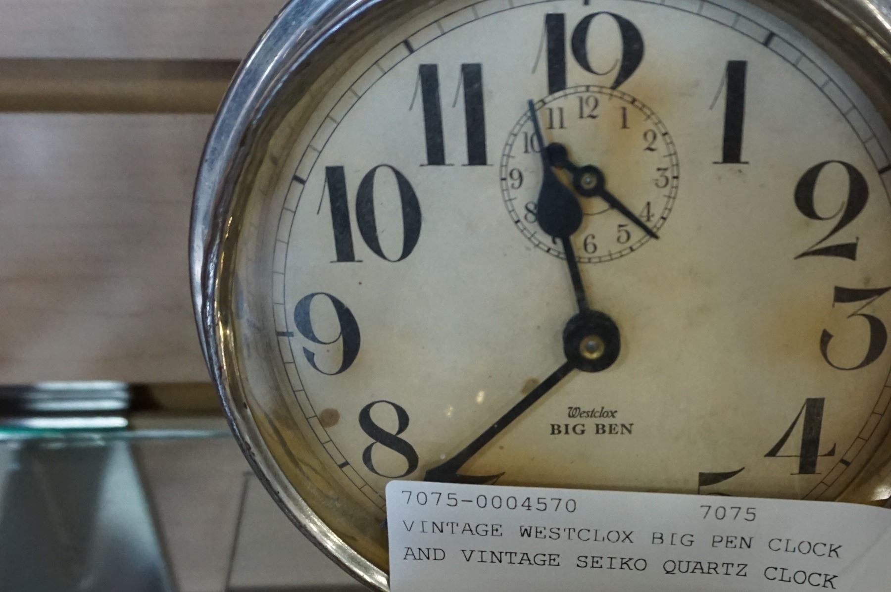 VINTAGE WESTCLOX BIG PEN CLOCK AND VINTAGE SEIKO QUARTZ CLOCK