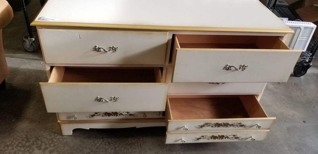 VINTAGE WHITE 6 DRAWER DRESSER