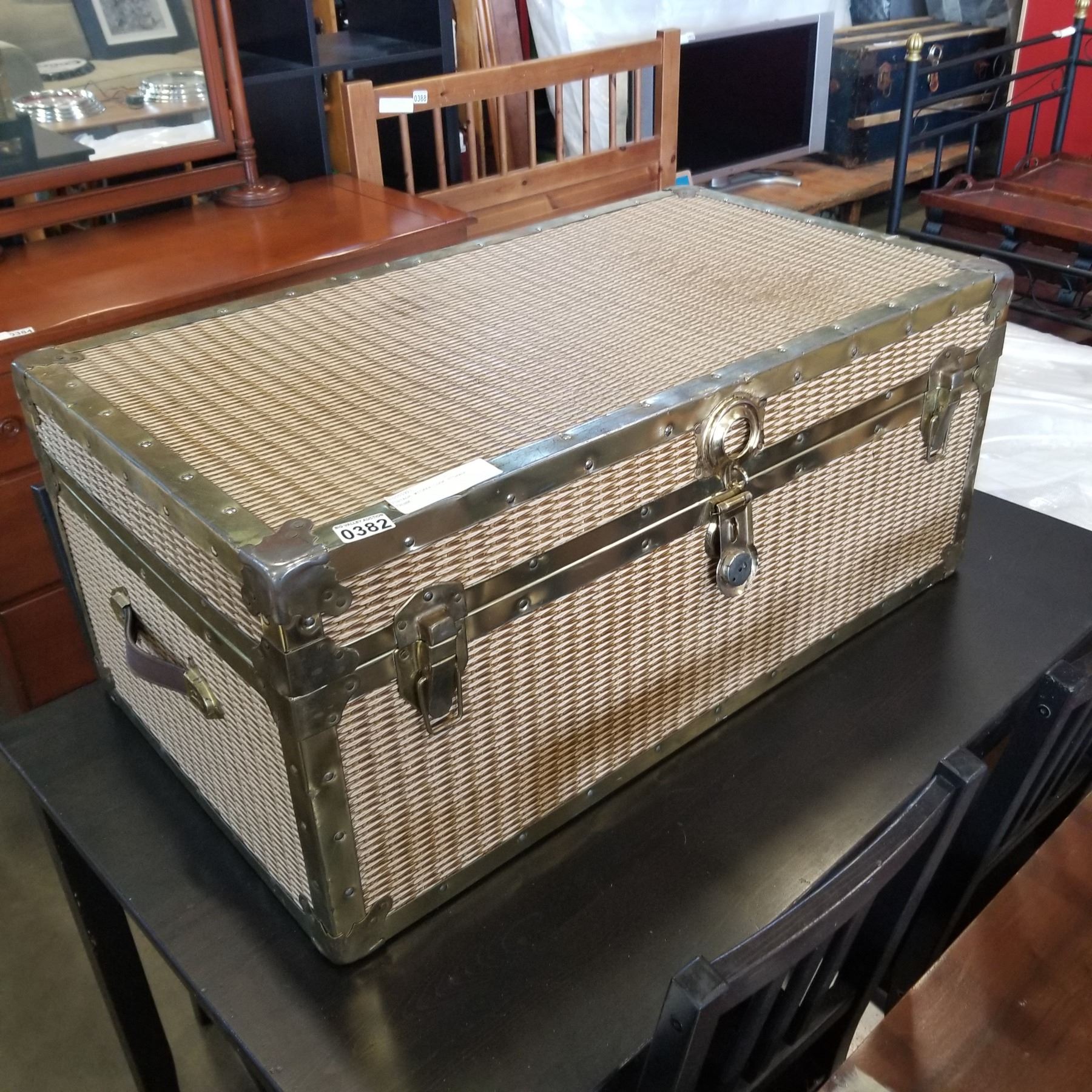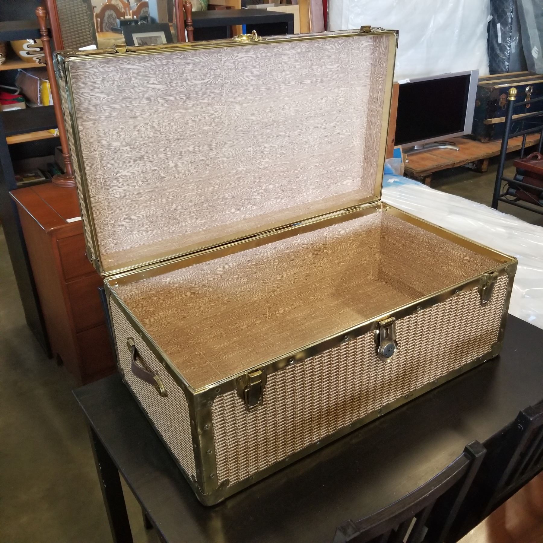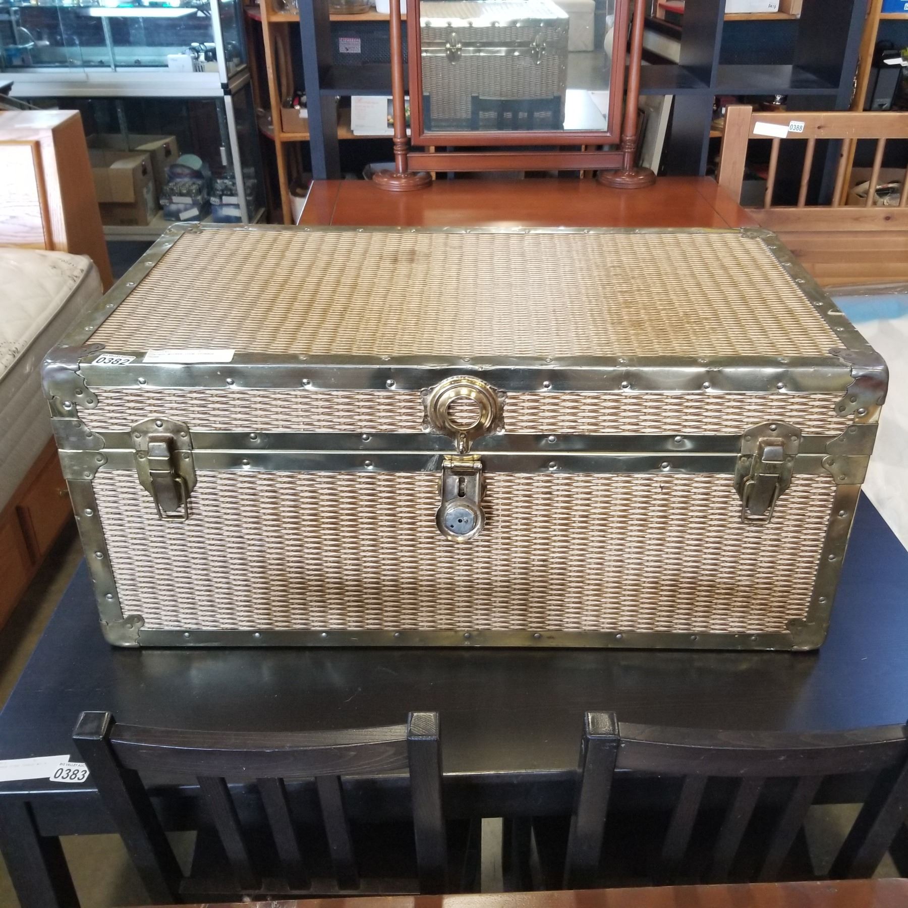 VINTAGE WICKER LOOK STORAGE TRUNK