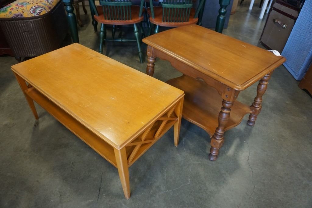 VINTAGE WOOD COFFEE TABLE AND ENDTABLE
