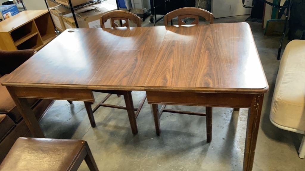 VINTAGE WOOD DINING TABLE WITH 4 CHAIRS