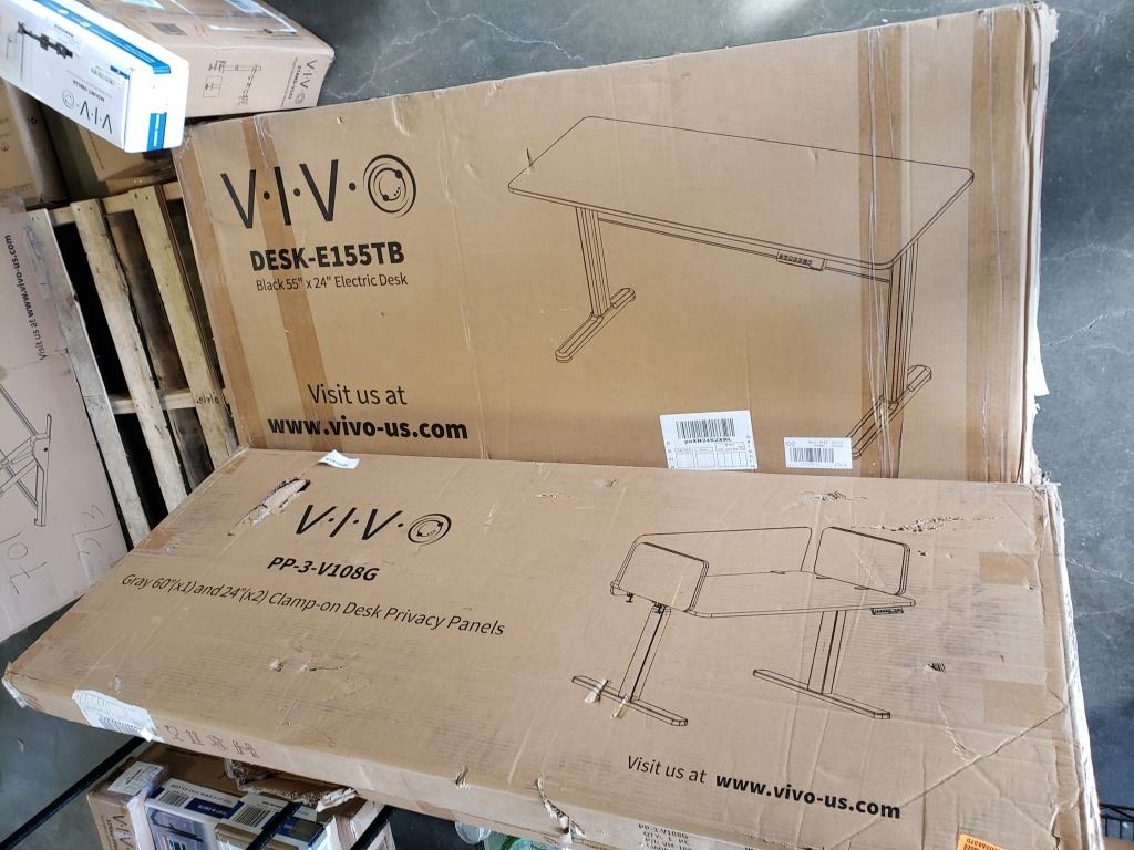 VIVO BLACK 55 X 24 INCH ELECTRIC LIFT DESK WITH GRAY 60 INCH X 24 INCH CLAMP ON PRIVACY PANELS