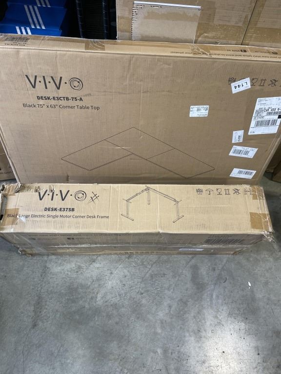 VIVO BLACK 75X63 INCH ELECTRIC SIT TO STAND CORNER DESK WITH BLACK ELECTRIC SINGLE MOTOR DESK FRAME