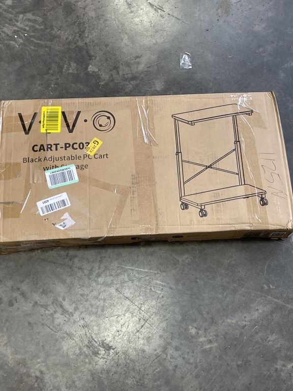 VIVO BLACK ADJUSTABLE PC CART WITH STORAGE