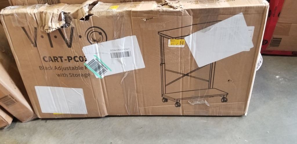 VIVO BLACK ADJUSTABLE PC CART WITH STORAGE