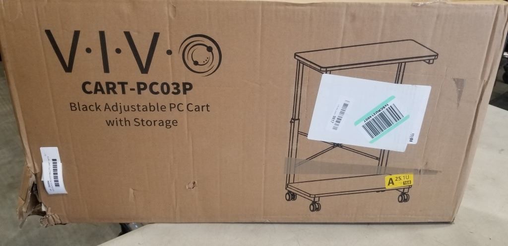 VIVO BLACK ADJUSTABLE PC CART WITH STORAGE