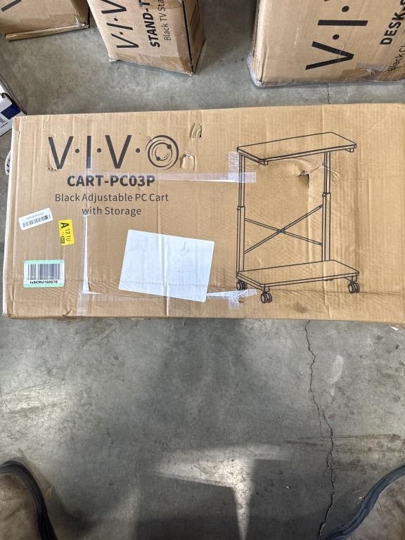 VIVO BLACK ADJUSTABLE PC CART WITH STORAGE