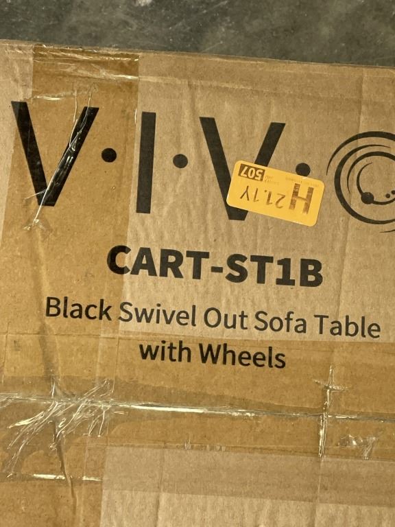 VIVO BLACK SWIVEL OUT SOFA TABLE WITYH WHEELS
