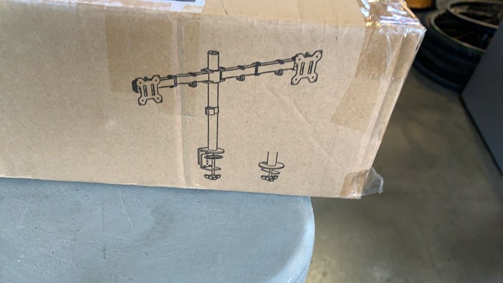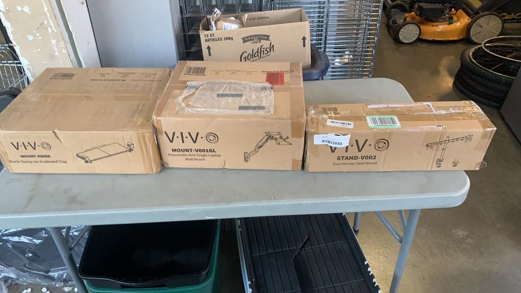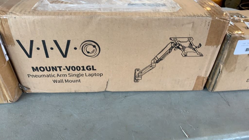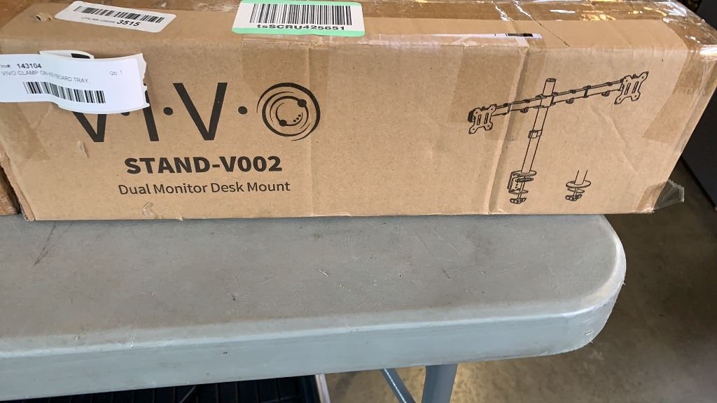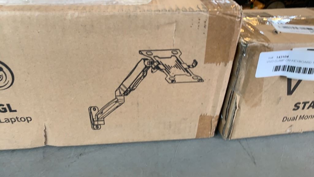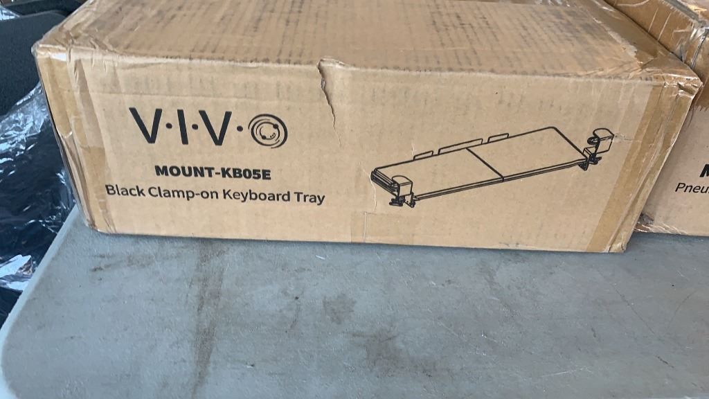 VIVO CLAMP ON KEYBOARD TRAY, PHEUMATIC ARM SINGLE LAPTOP WALL MOUNT, AND DUAL MONITOR MOUNT