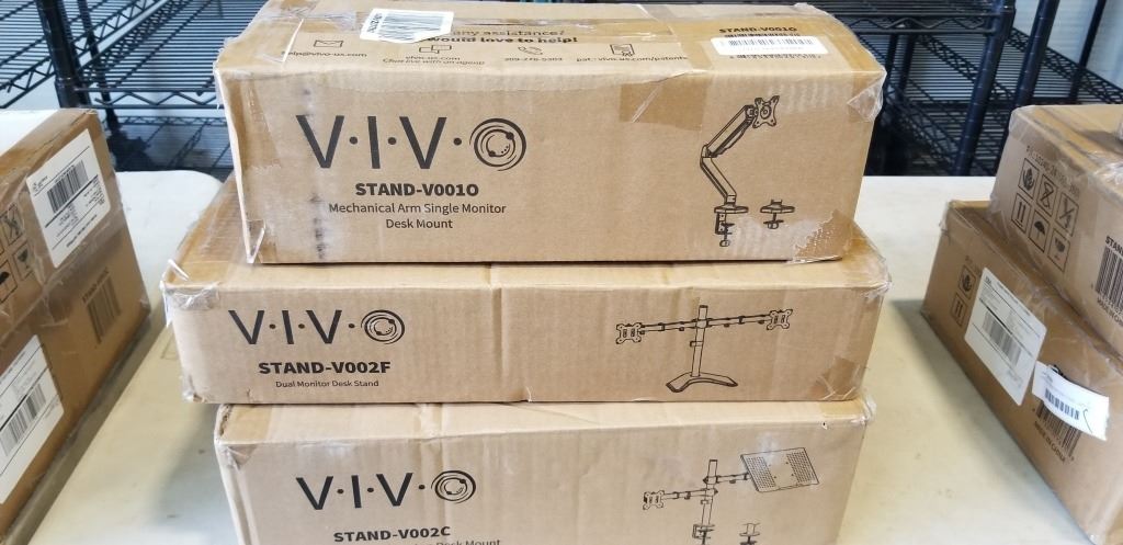 VIVO DUAL MONITOR DESK STAND, LAPTOP DESK MOUNT, AND SINGLE MONITOR ADJSTABLE DESK MOUNT