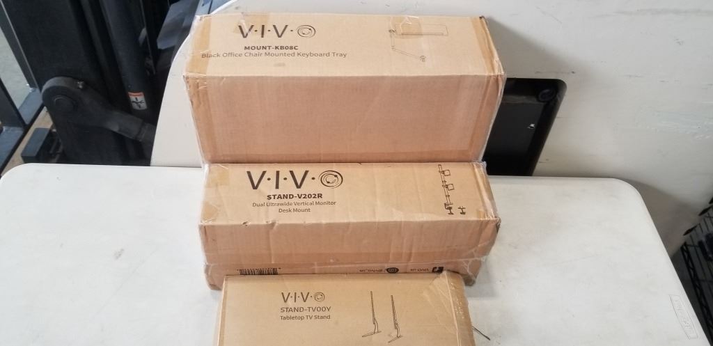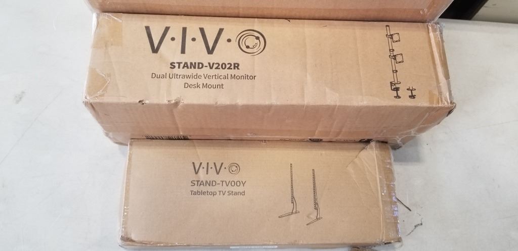 VIVO DUAL ULTRAWIDE VERTICAL MONITOR MOUNT AND OFFICE CHAIR MOUNTED KEYBOARD TRAY, WITH TABLE TOP TV STAND