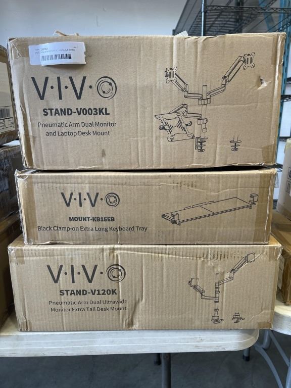 VIVO DUALK MONTIOR ADJUSTABLE DESK MOUNT, DUAL MONITOR AND LAPTOP DEKS MOUNT AND KEYBOARD TRAY