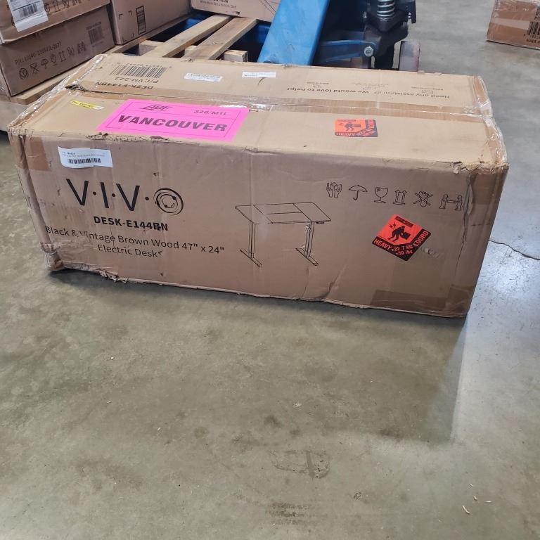 VIVO ELECTRIC DESK BLACK AND VINTAGE BROWN, 47 INCH X 24 INCH