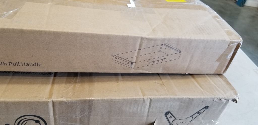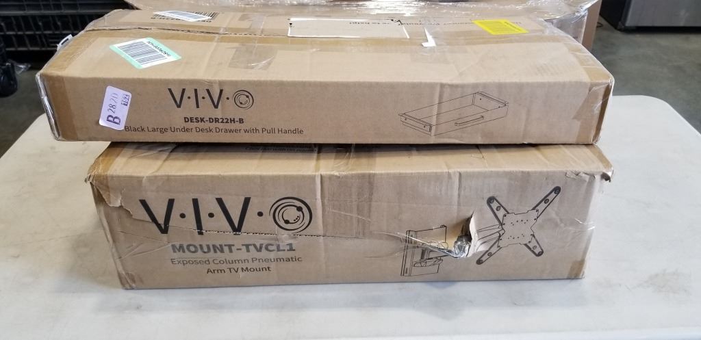 VIVO EXPOSED COLUMN PNEUMTAIC ARM TV MOUNT, AND BLACK LARGE UNDER DESK DRAWER