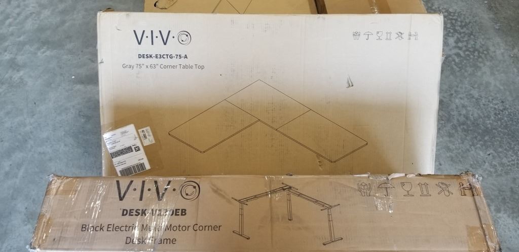 VIVO GRAY 75 X 63 INCH ELECTRIC SIT TO STAND DESK WITH BLACK ELECTRIC MULTI MOTOR CORNER DESK FRAME