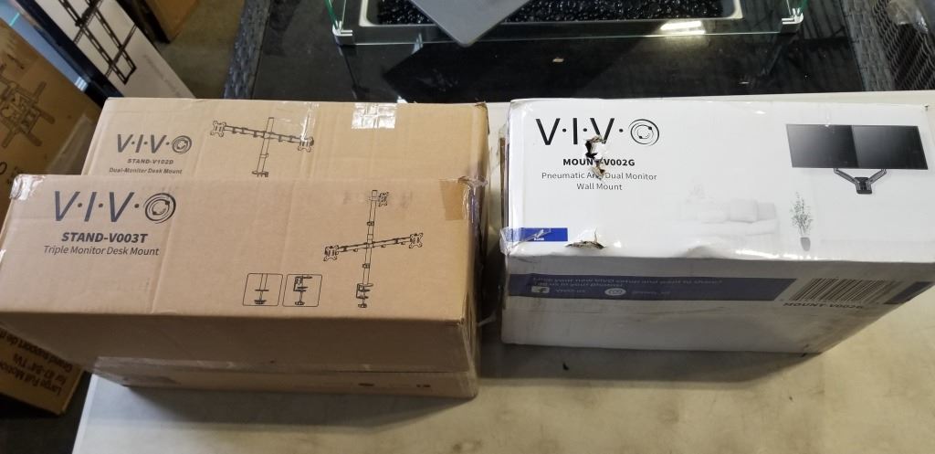 VIVO PNEUMATIC ARM DUAL MONITOR WALL MOUNT, DUAKL MONITOR DESK MOUNT, AND DUAL MONITOR EXTRA TALL DESK MOUNT