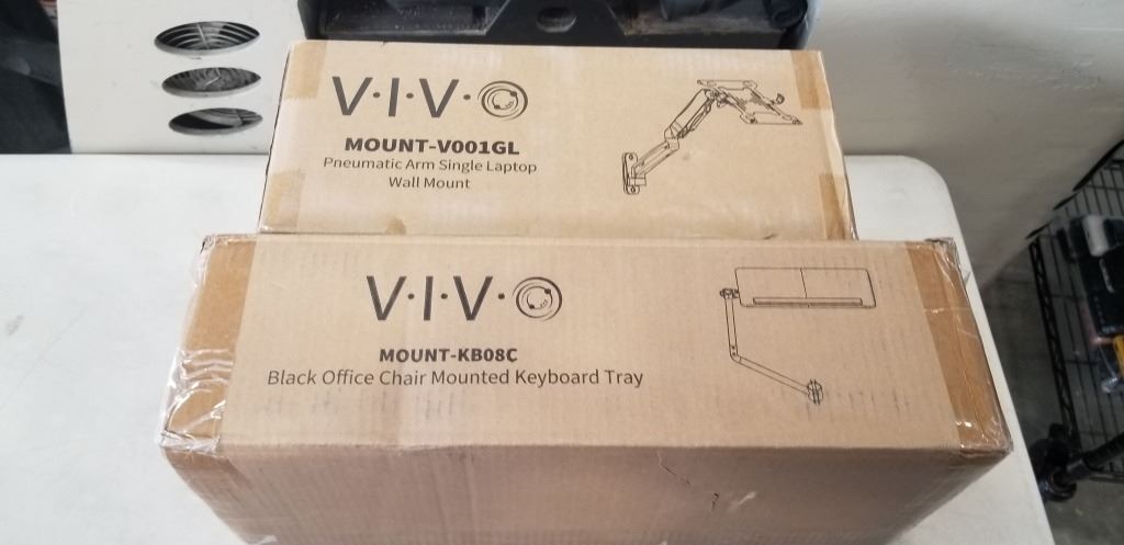 VIVO PNEUMATIC ARM SINGLE LAPTOP WALL MOUNT AND OFFIC CHAIR MOUNTED KEYBOARD TRAY