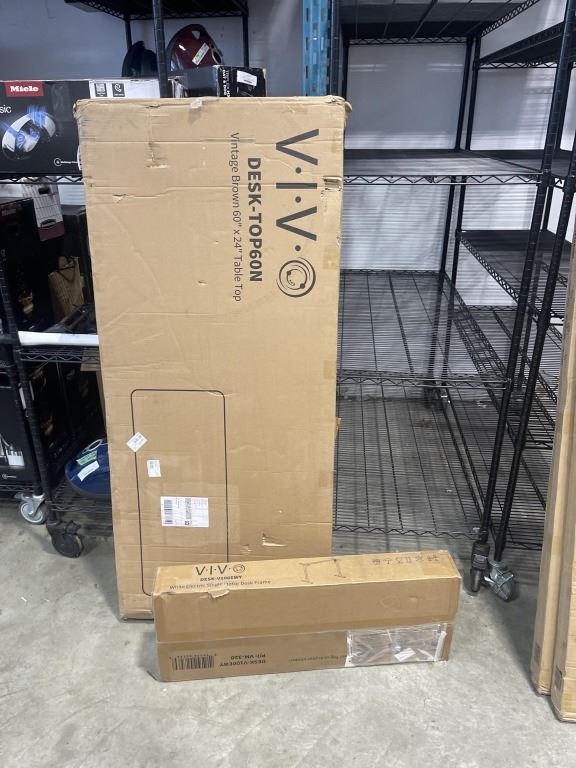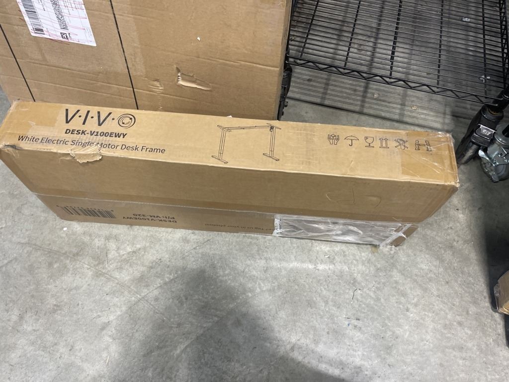 VIVO VINTAGE BROWN 60 X 24 ELECTRIC SIT TO STAND WORK STATION WITH WHITE ELECTRIC SINGLE MOTOR DESK FRAME