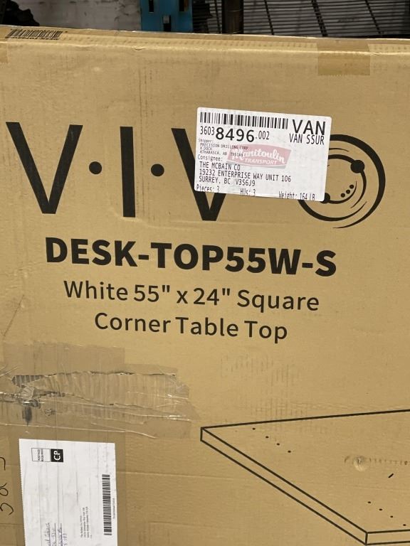 VIVO WHITE 55 X 24 SQAURE CORNER TABLE TOP