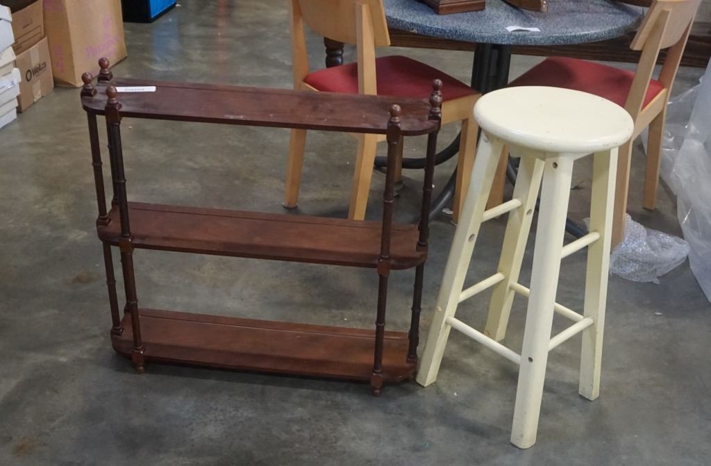 Vintage 3 tier knick knack shelf and barstool