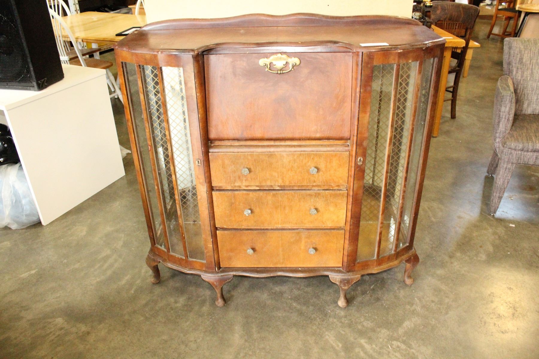 WALNUT DROP-FRONT DESK WITH DISPLAY