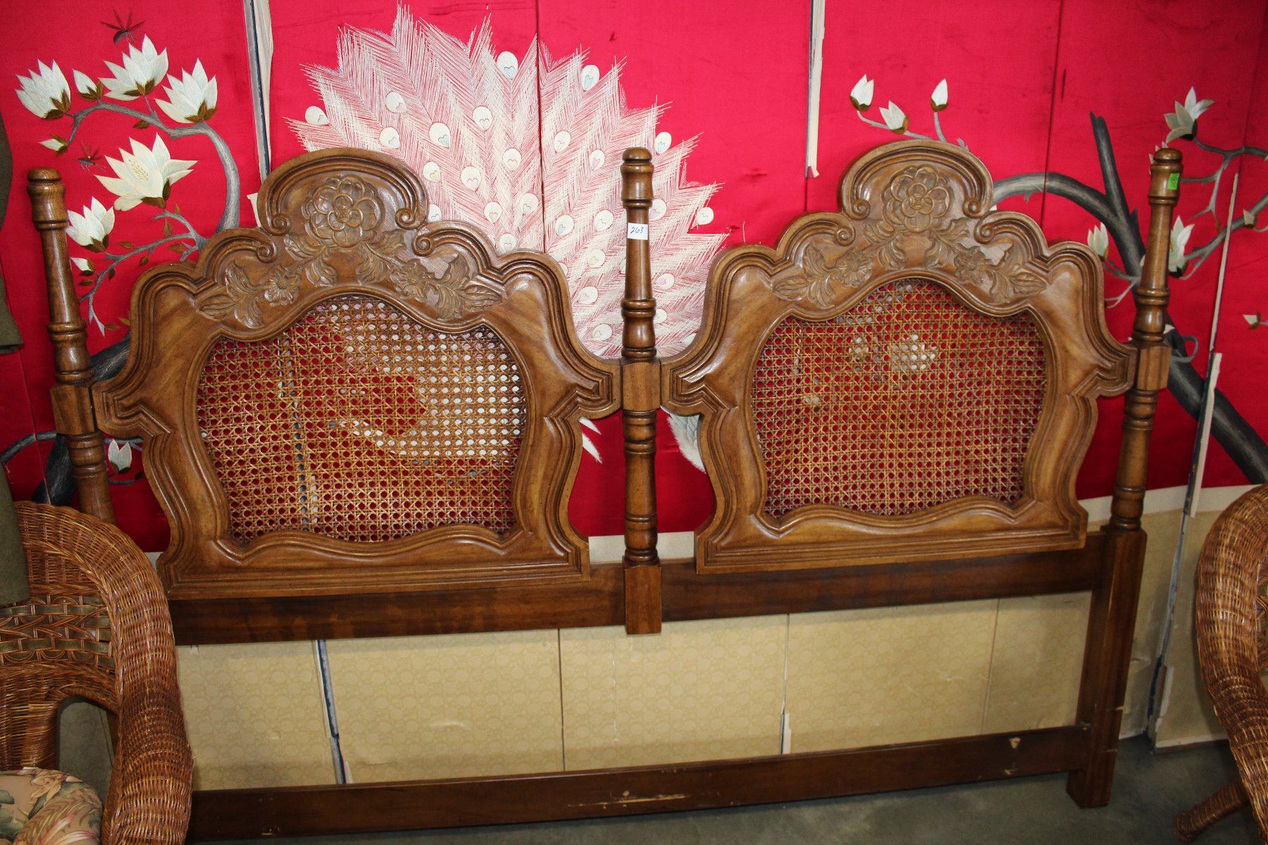 WALNUT KINGSIZE HEADBOARD WITH RATTAN INSERTS