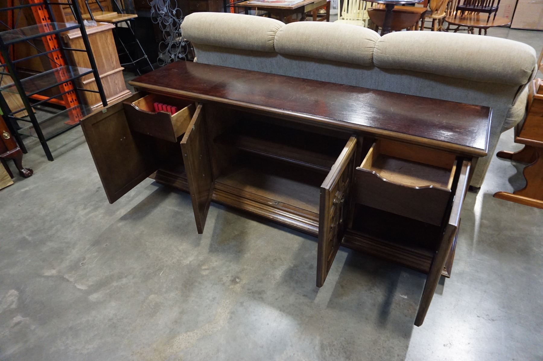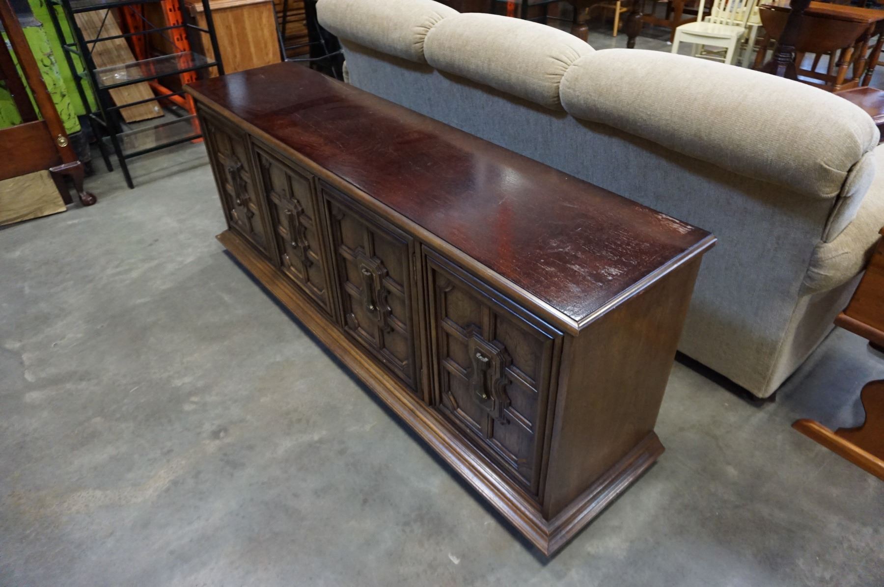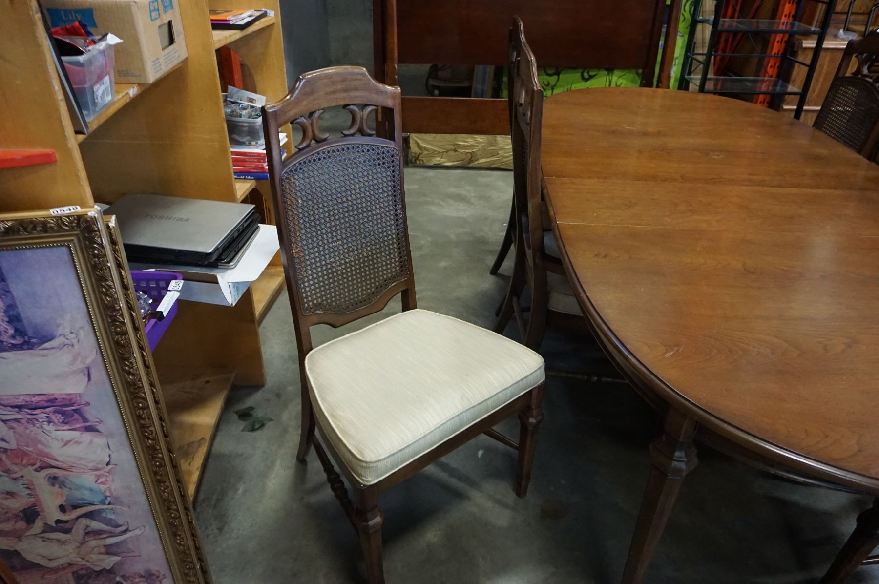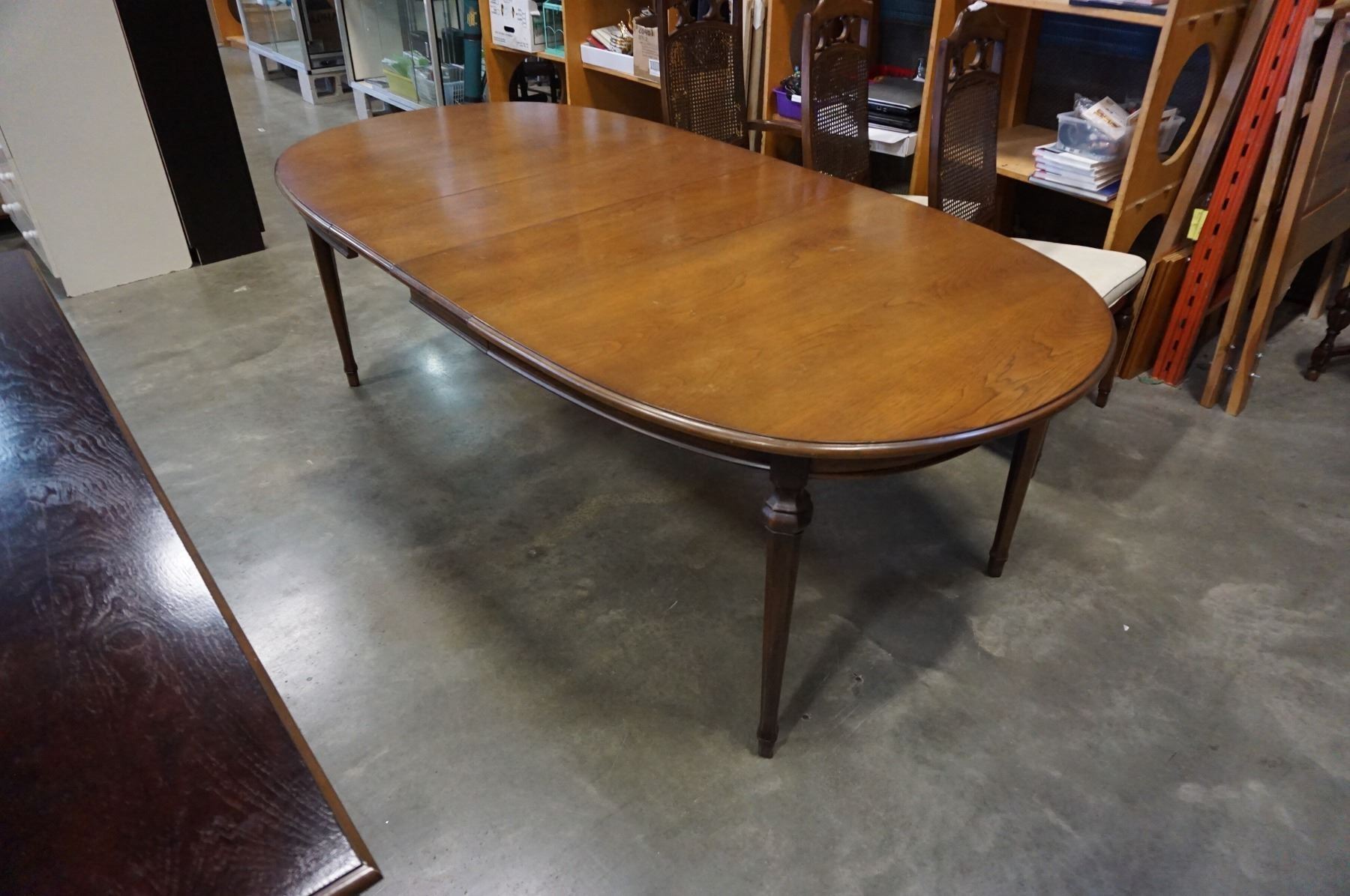 WALNUT OVAL DINING TABLE W/ 6 CHAIRS AND SERVER