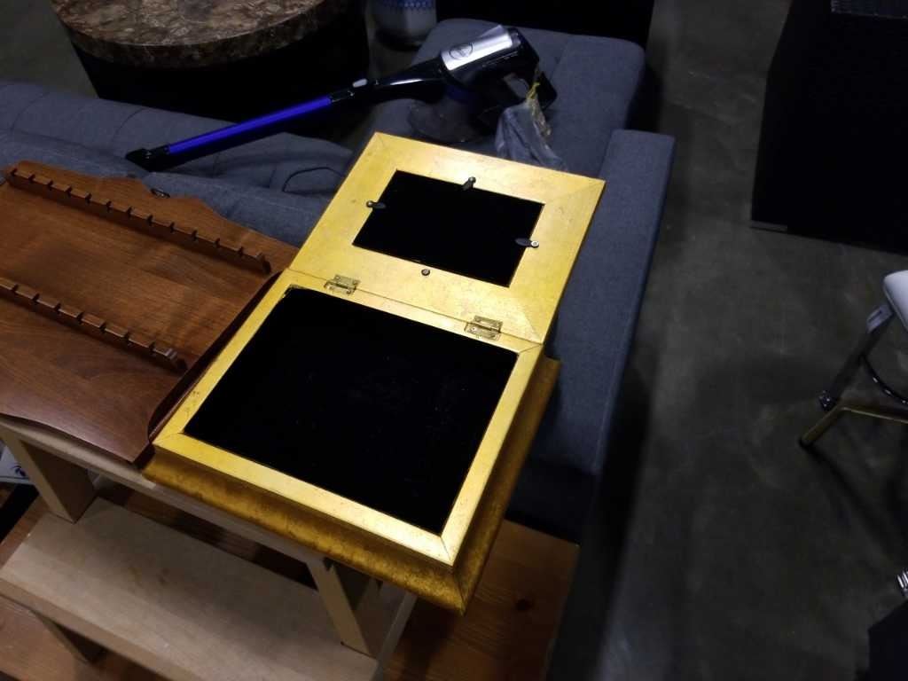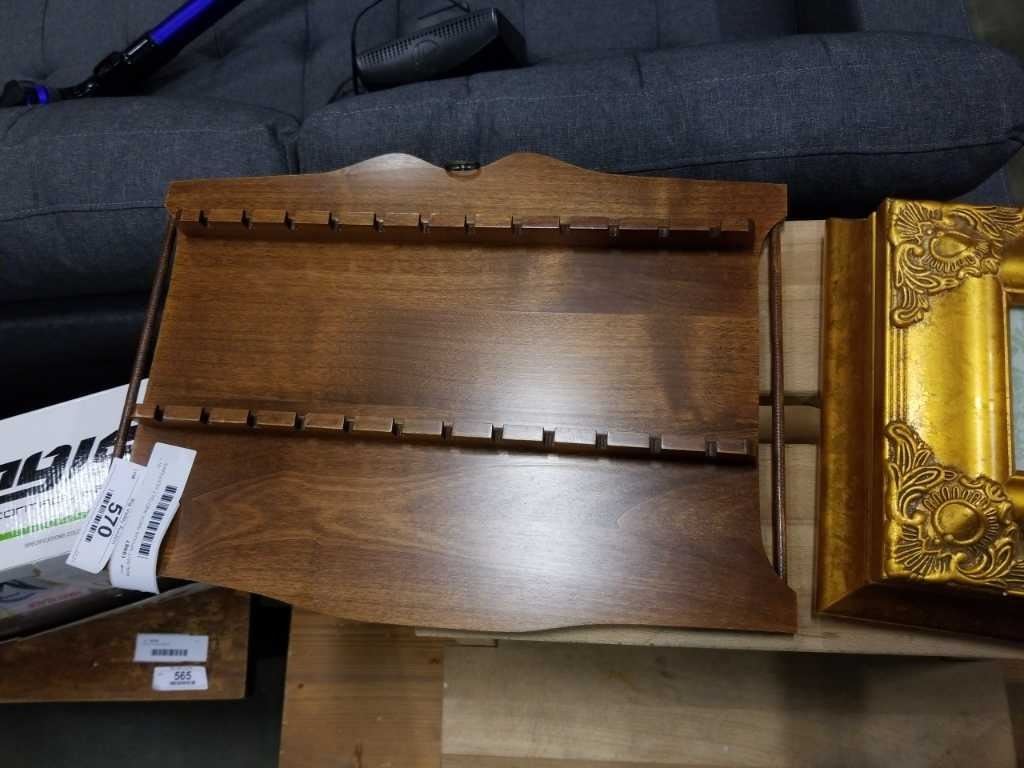 WALNUT SPOON RACK AND GILT KEEPSAKE BOX