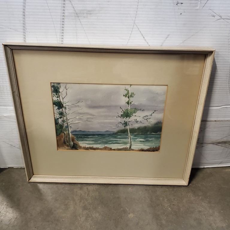 WATERCOLOR ON PAPER LAKE SCENE SIGNED R W TAYLOR