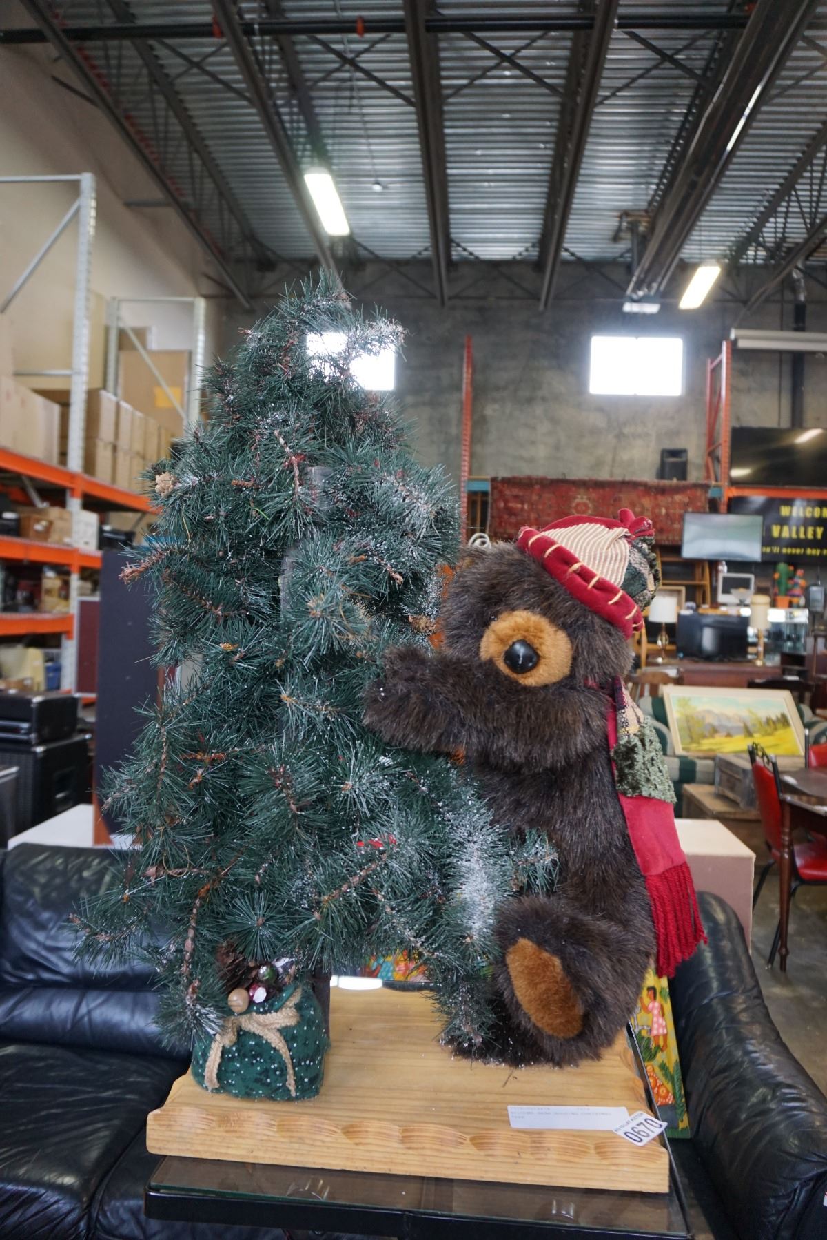 WELCOME BEAR HOLDING CHRISTMAS TREE