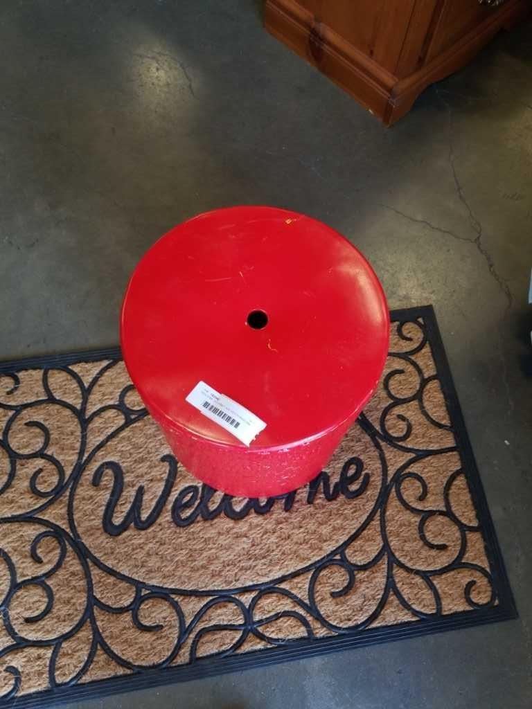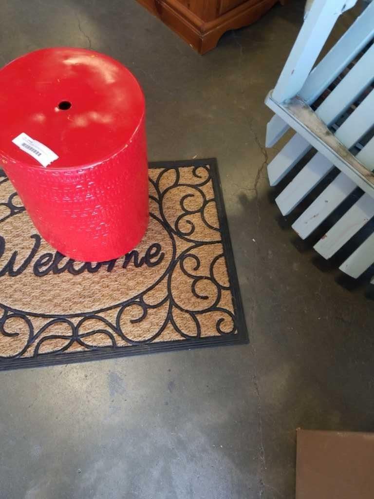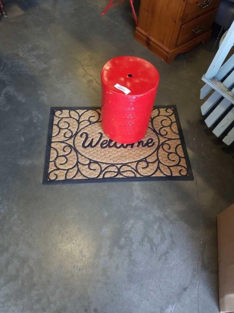 WELCOME DOORMAT AND RED PORCELAIN STAND