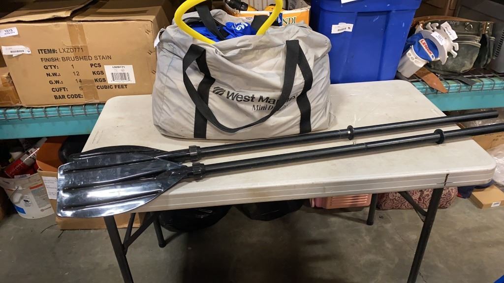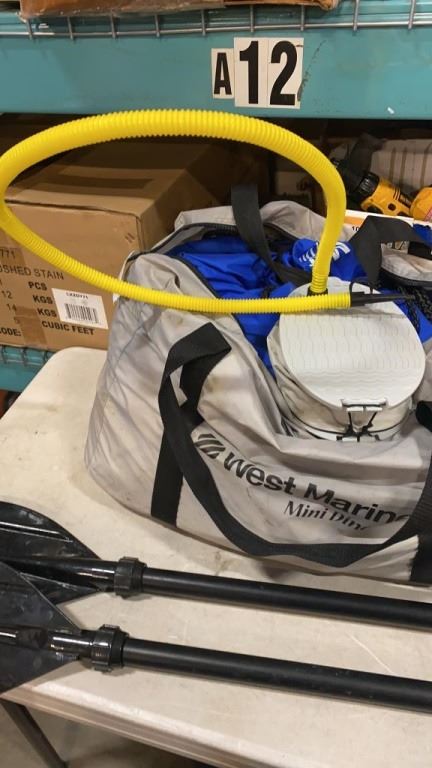 WEST MARINE INFLATABLE MINI DINGHY WITH OARS AND FOOT PUMP