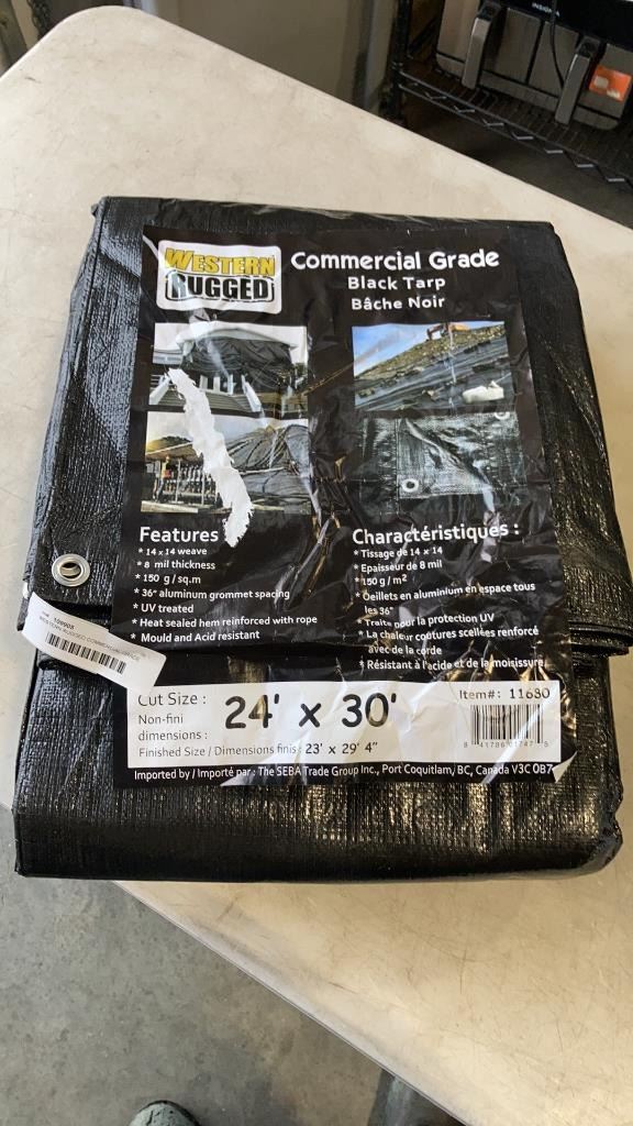 WESTERN RUGGED COMMERCIAL GRADE BLACK TARP 24 X 30 FOOT - RETAIL $99