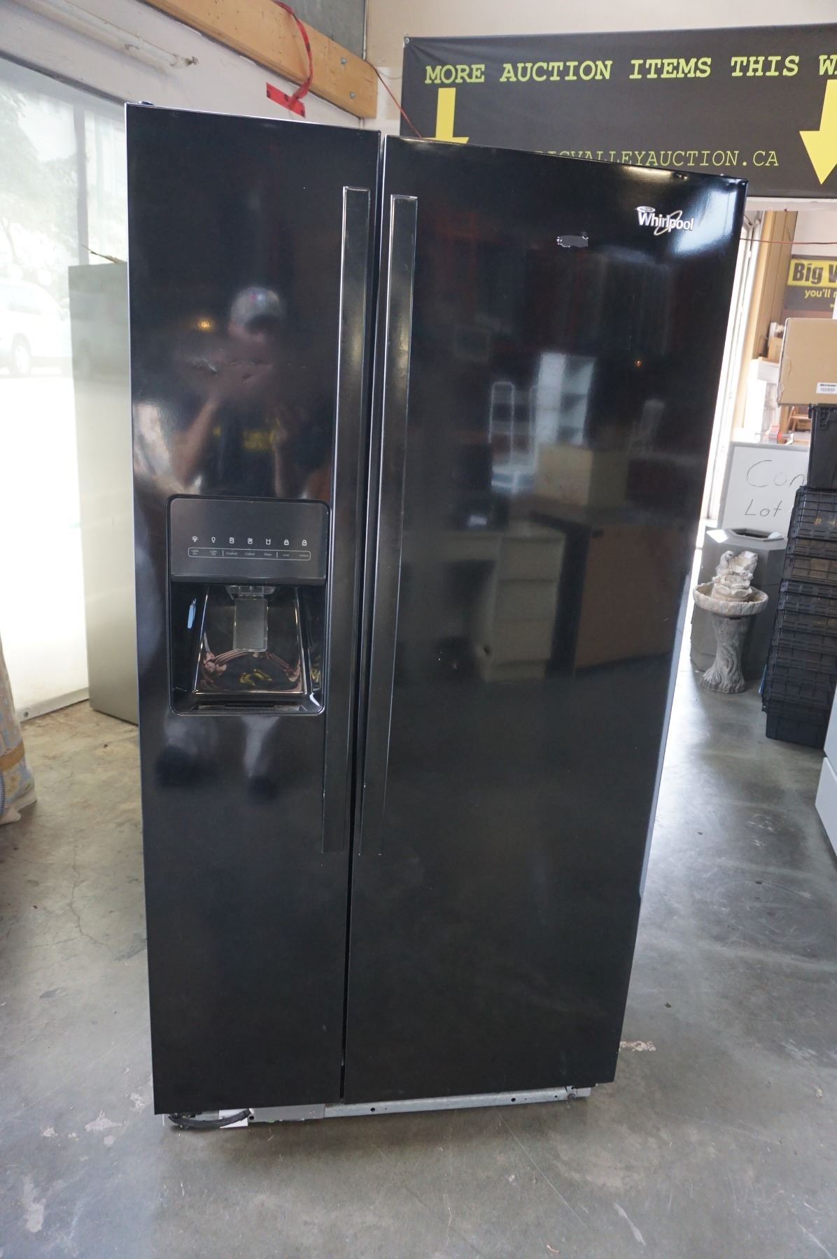 WHIRLPOOL BLACK 33 INCH SIDE BY SIDE REFRIDGERATOR WITH FREEZER, TESTED AND WORKING GUARANTEED