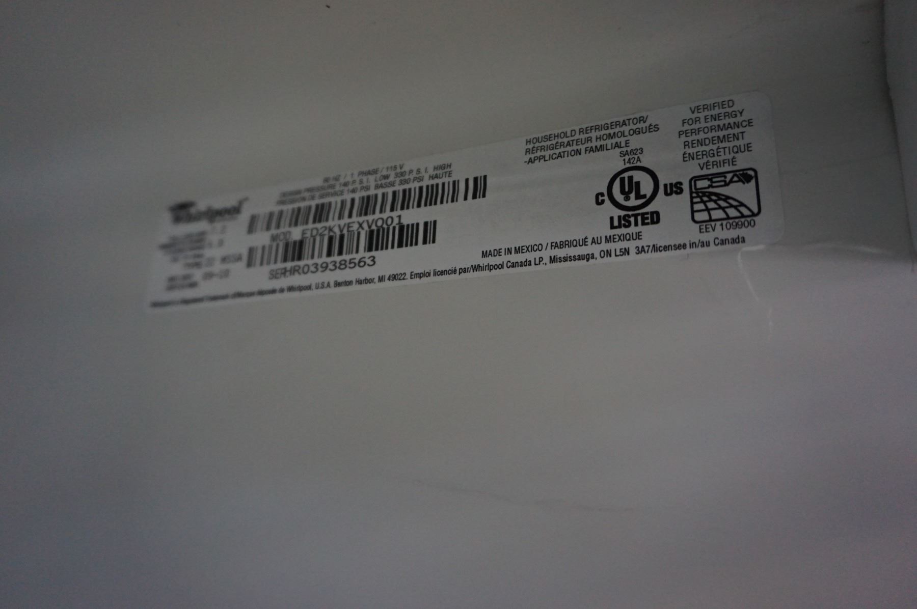 WHIRLPOOL WHITE 33 INCH SIDE BY SIDE REFRIDGERATOR WITH FREEZER, TESTED AND WORKING GUARANTEED