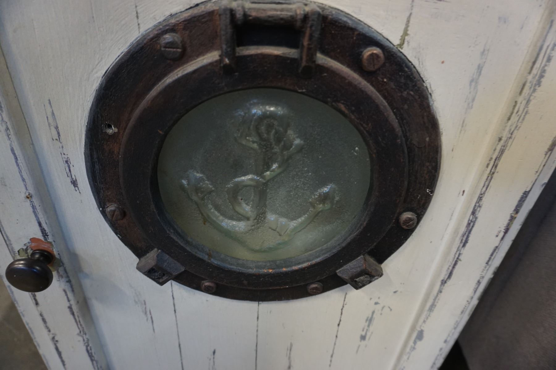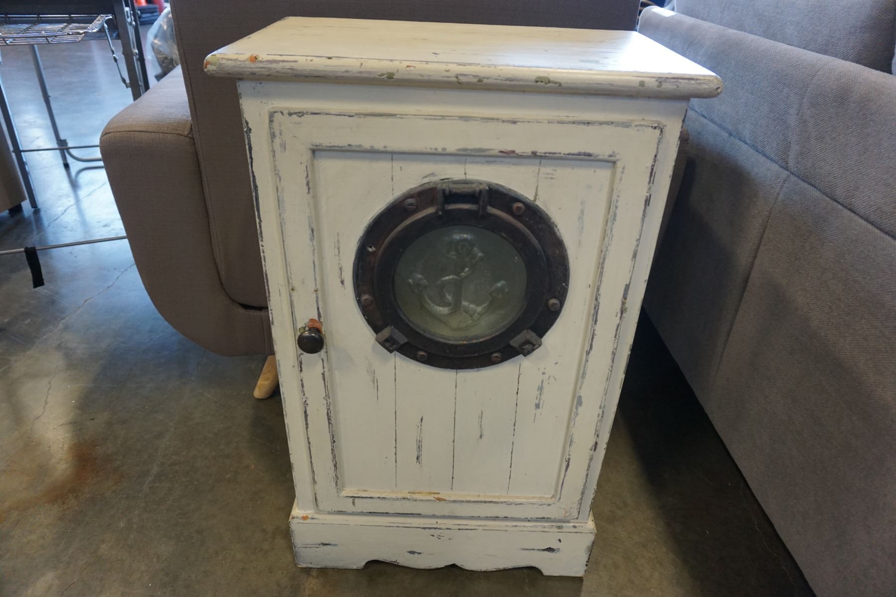 WHITE 1 DOOR PORTHOLE CUPBOARD