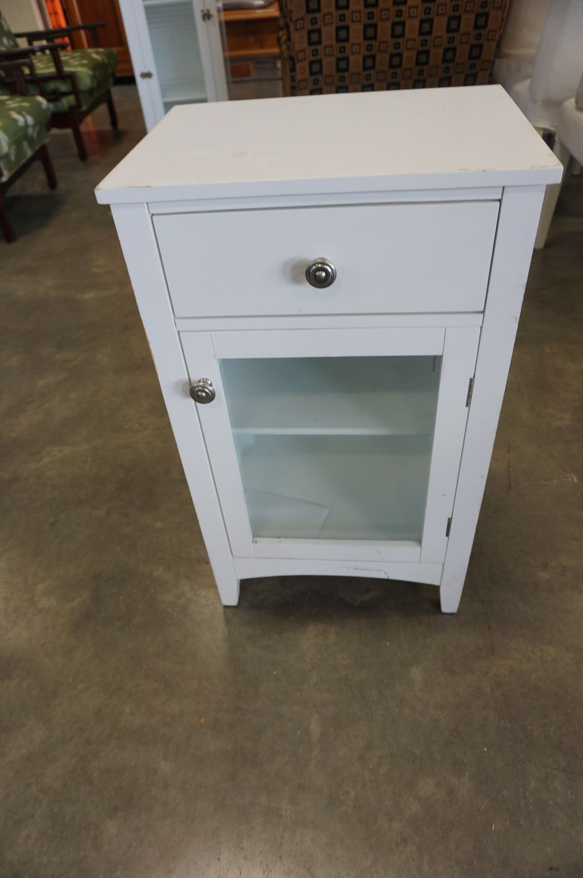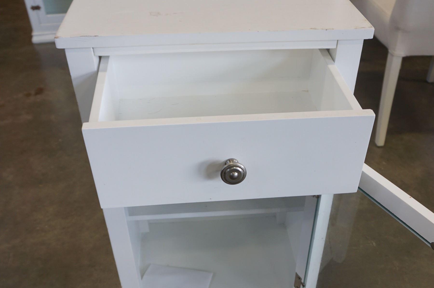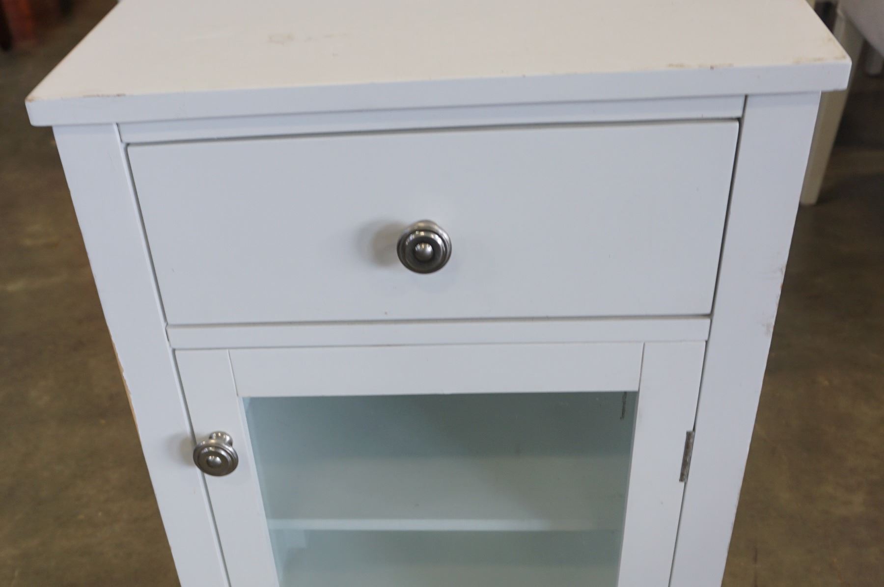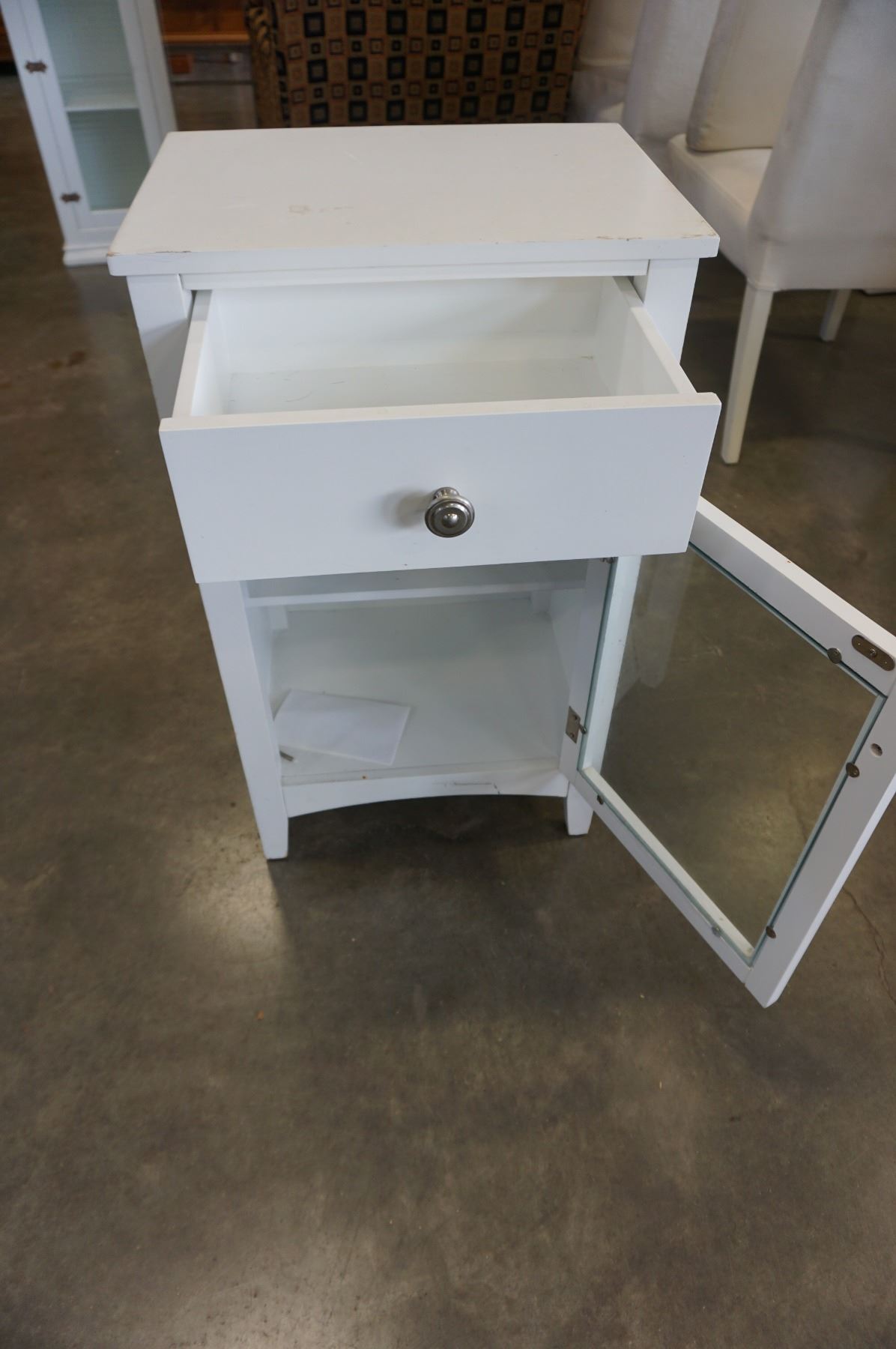 WHITE 1 DRAWER GLASS DOOR NIGHTSTAND