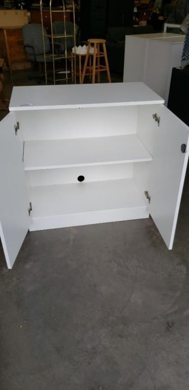 WHITE 2 DOOR LOCKING CABINET WITH KEY