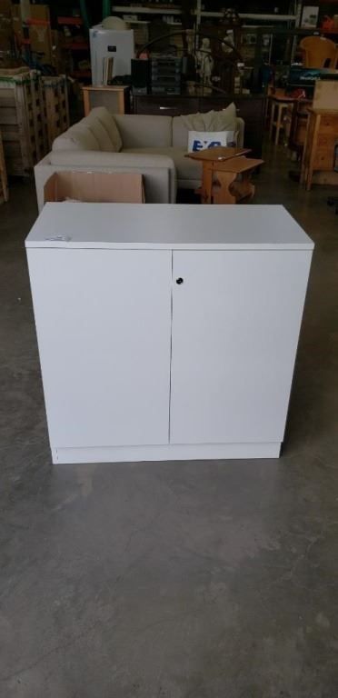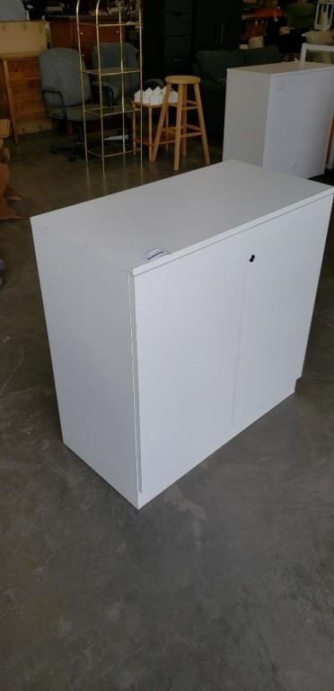 WHITE 2 DOOR LOCKING CABINET WITH KEY