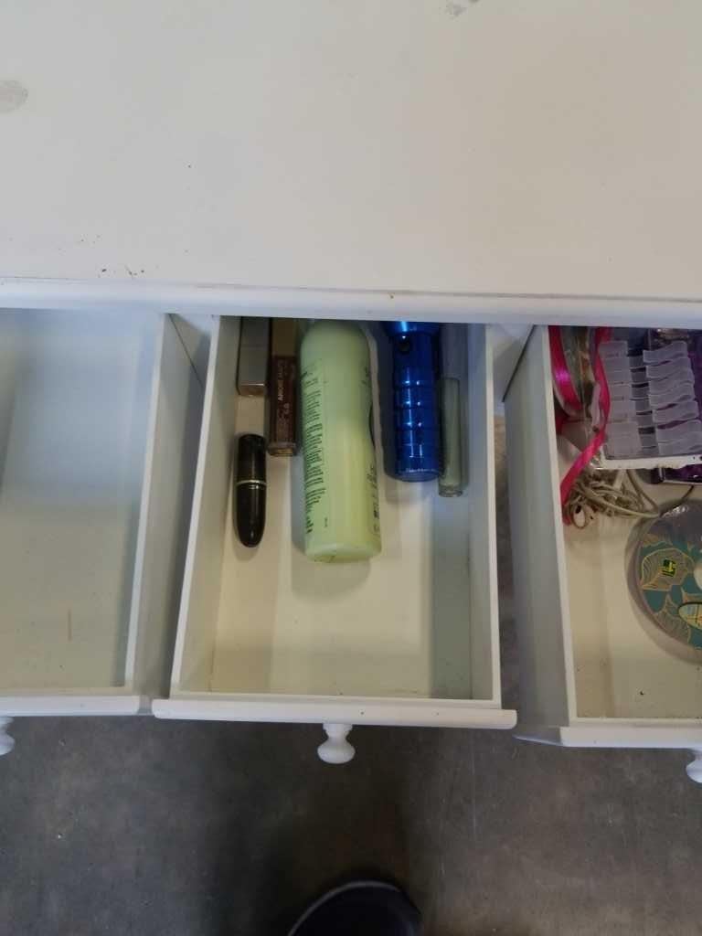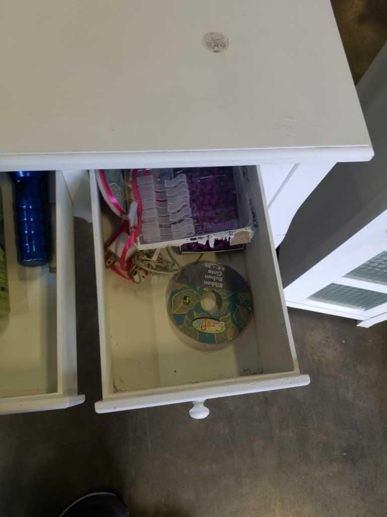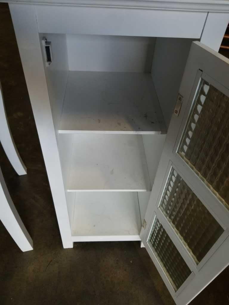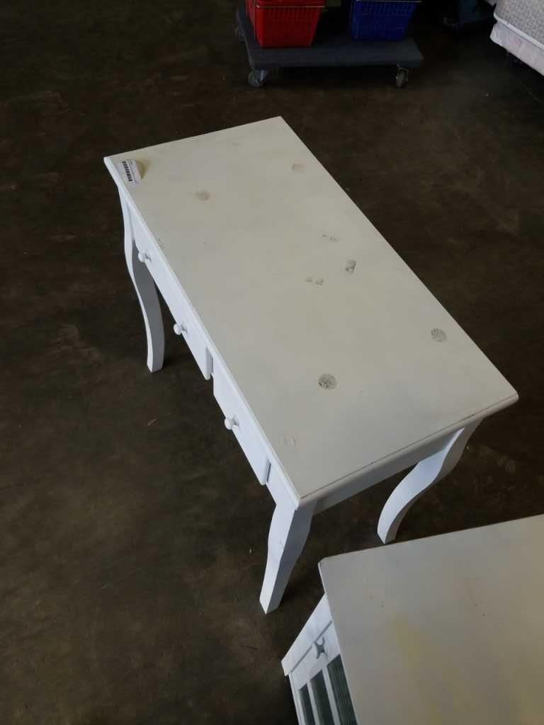 WHITE 3 DRAWER DESK AND GLASS DOOR CABINET