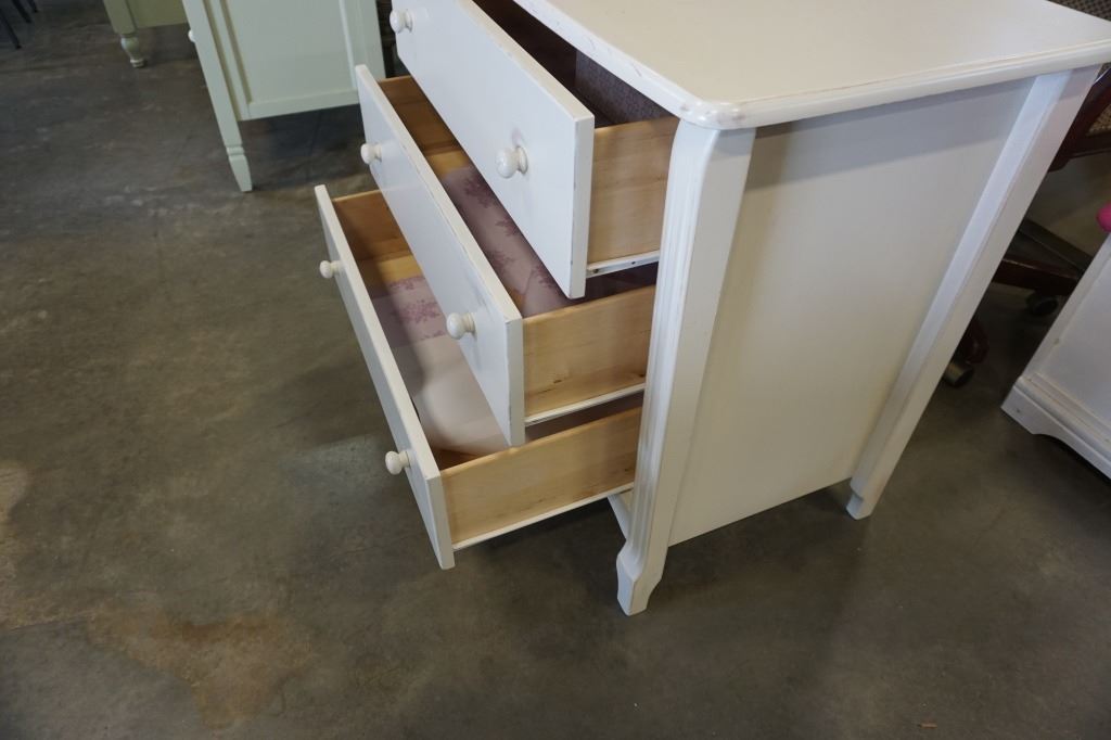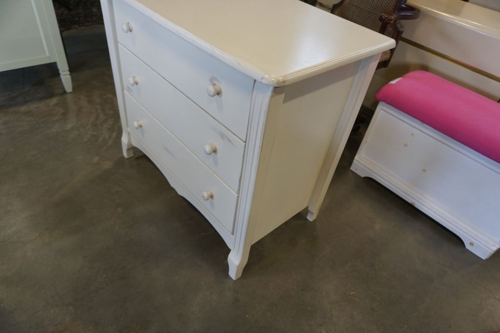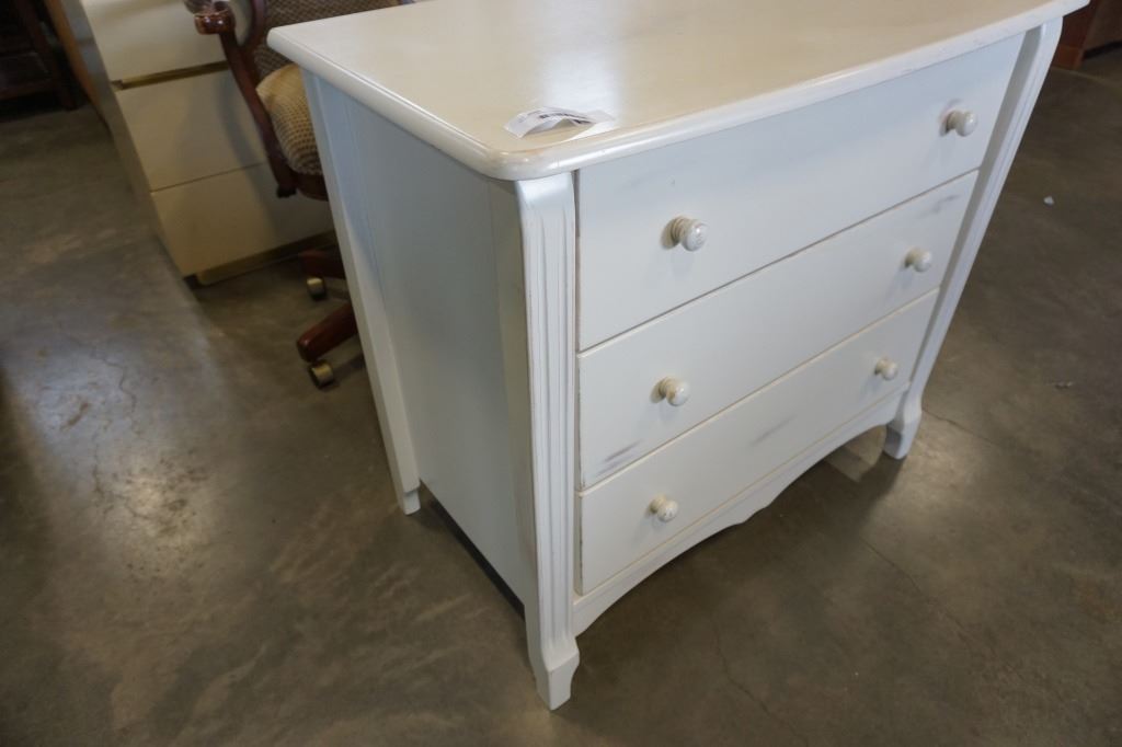 WHITE 3 DRAWER DRESSER - 37 INCHES WIDE, 21 DEEP, 33 TALL
