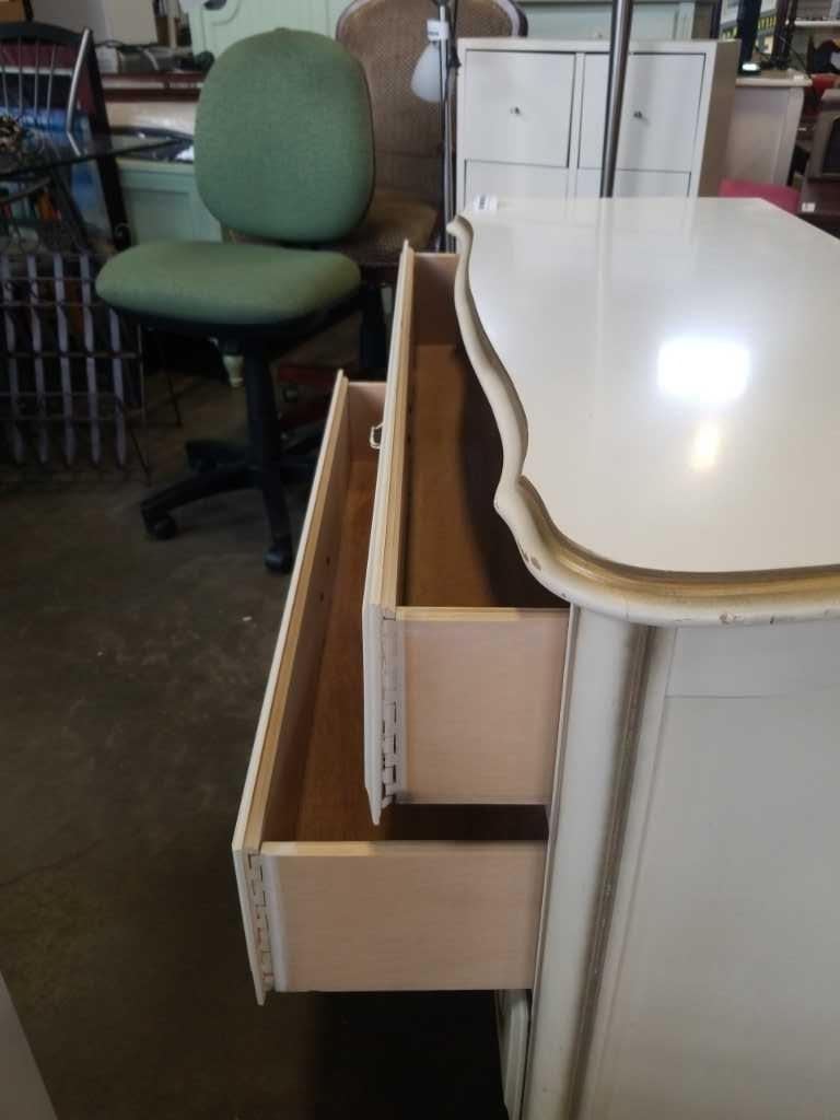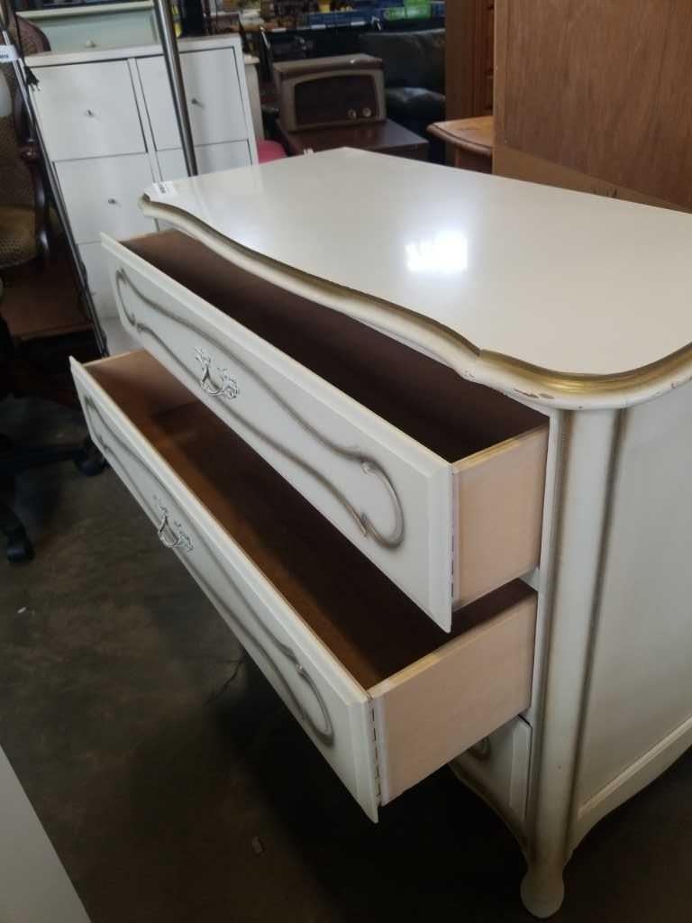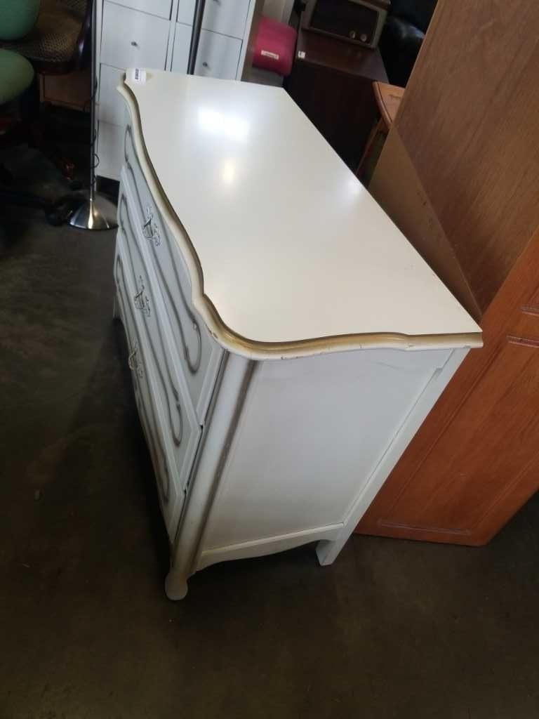 WHITE 3 DRAWER FRENCH PROVINCIAL DRESSER - 40 INCH WIDE X 18 DEEP X 32 TALL