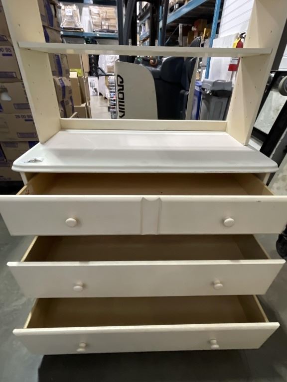 WHITE 4 DRAWER DRESSER W/ SHELVES