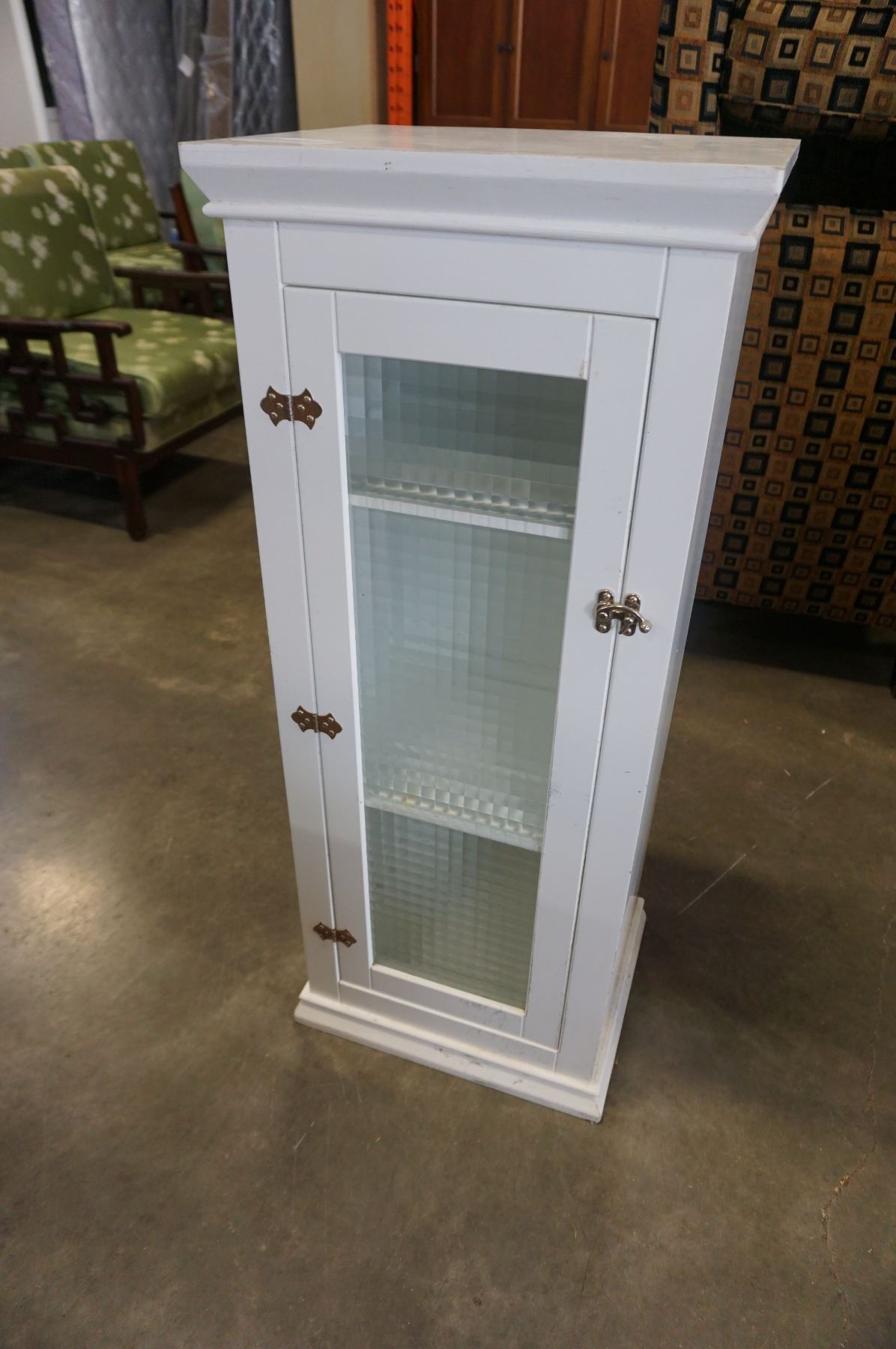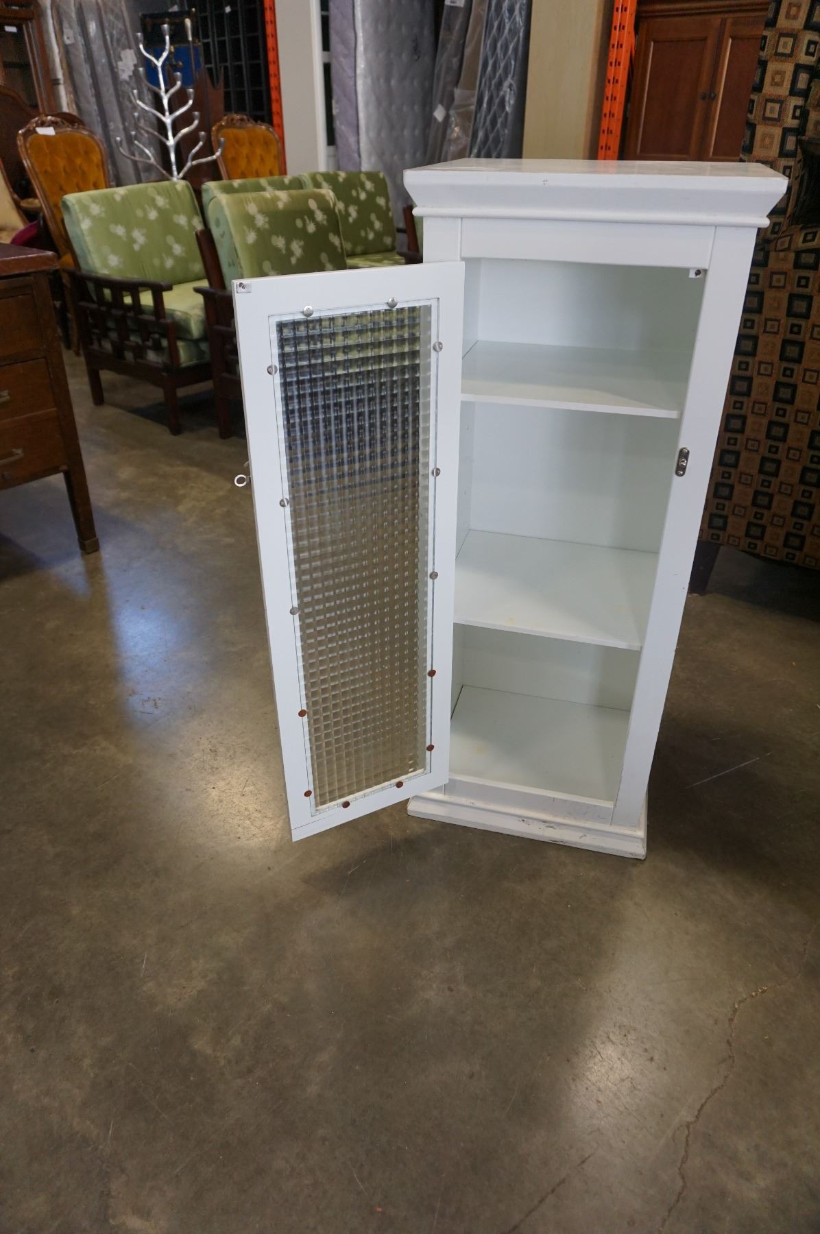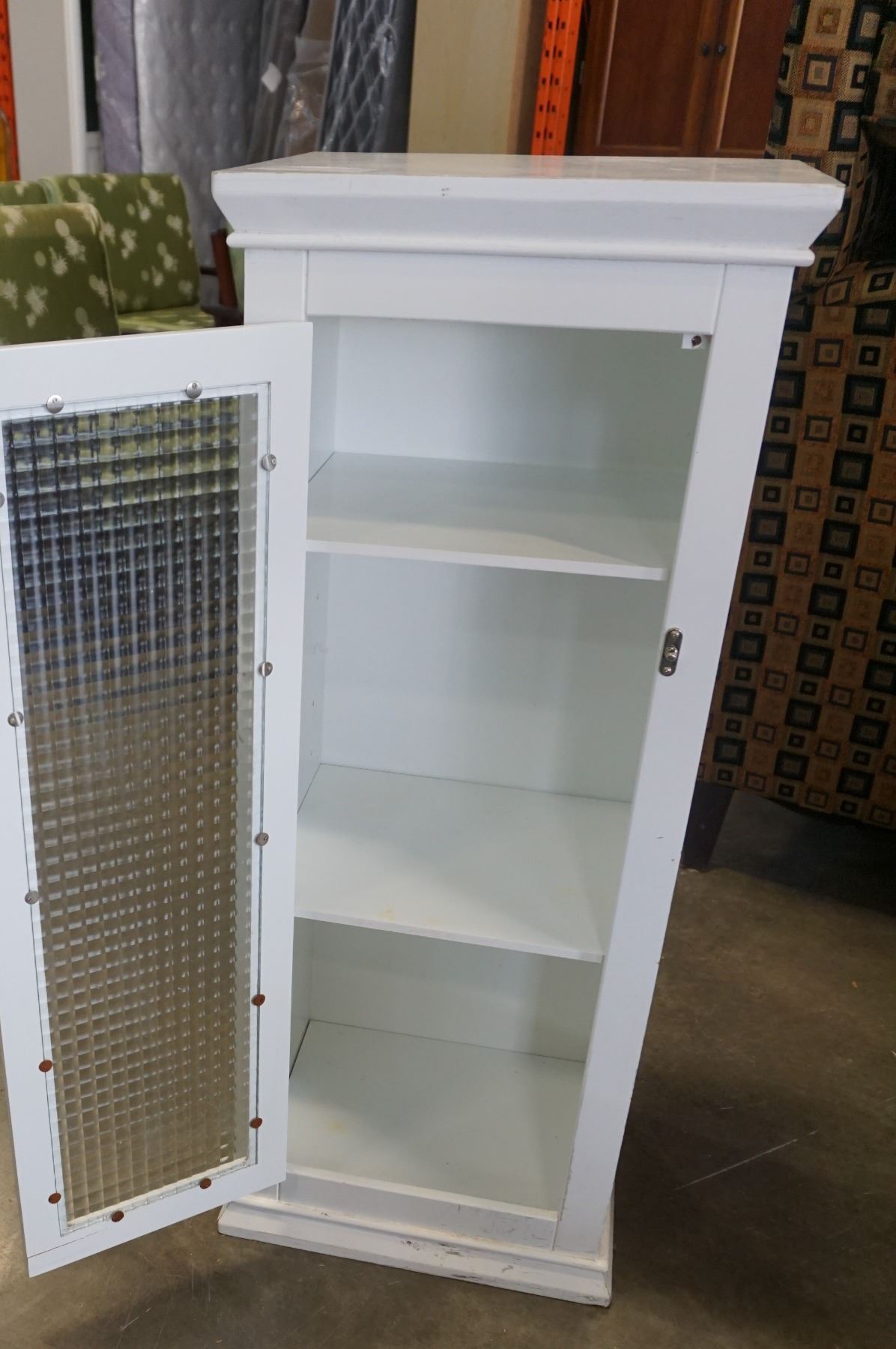 WHITE 4FT TALL GLASS DOOR STORAGE CABINET