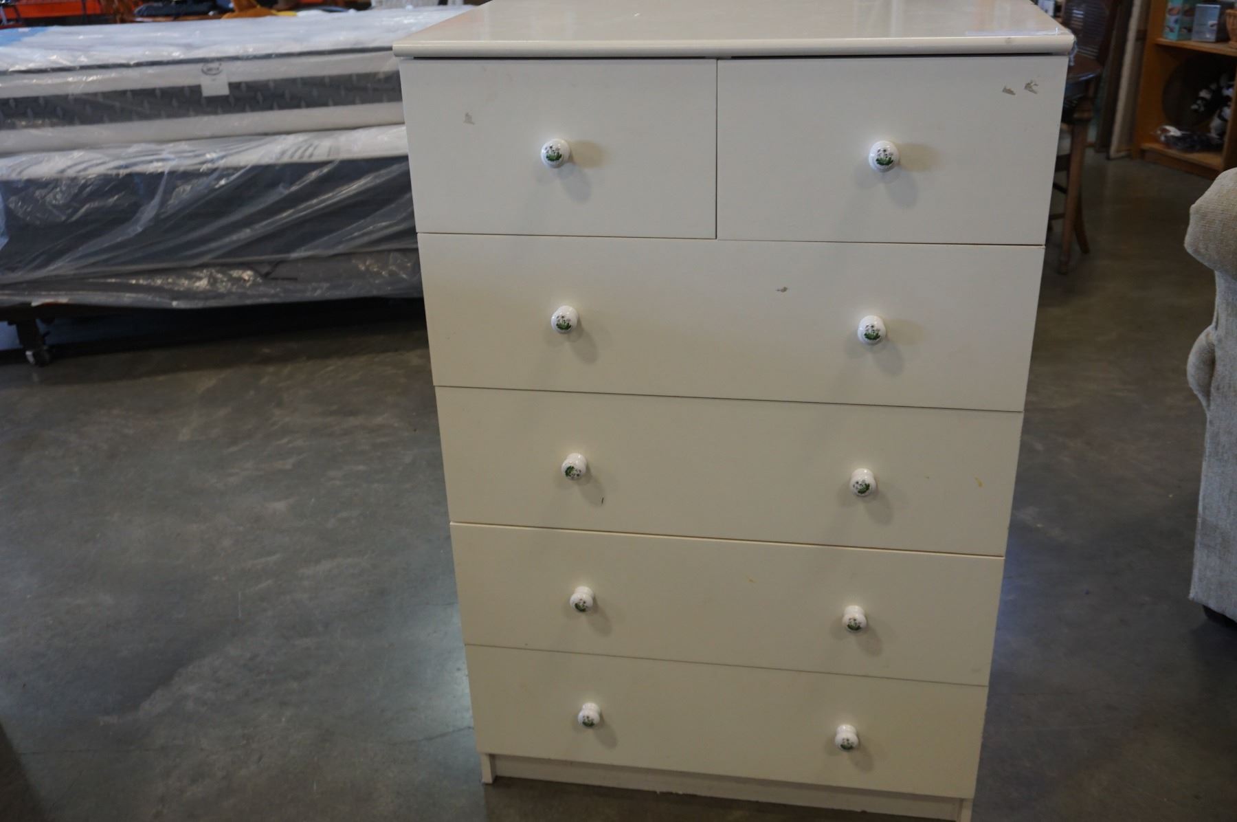 WHITE 6 DRAWER HIGH BOY DRESSER