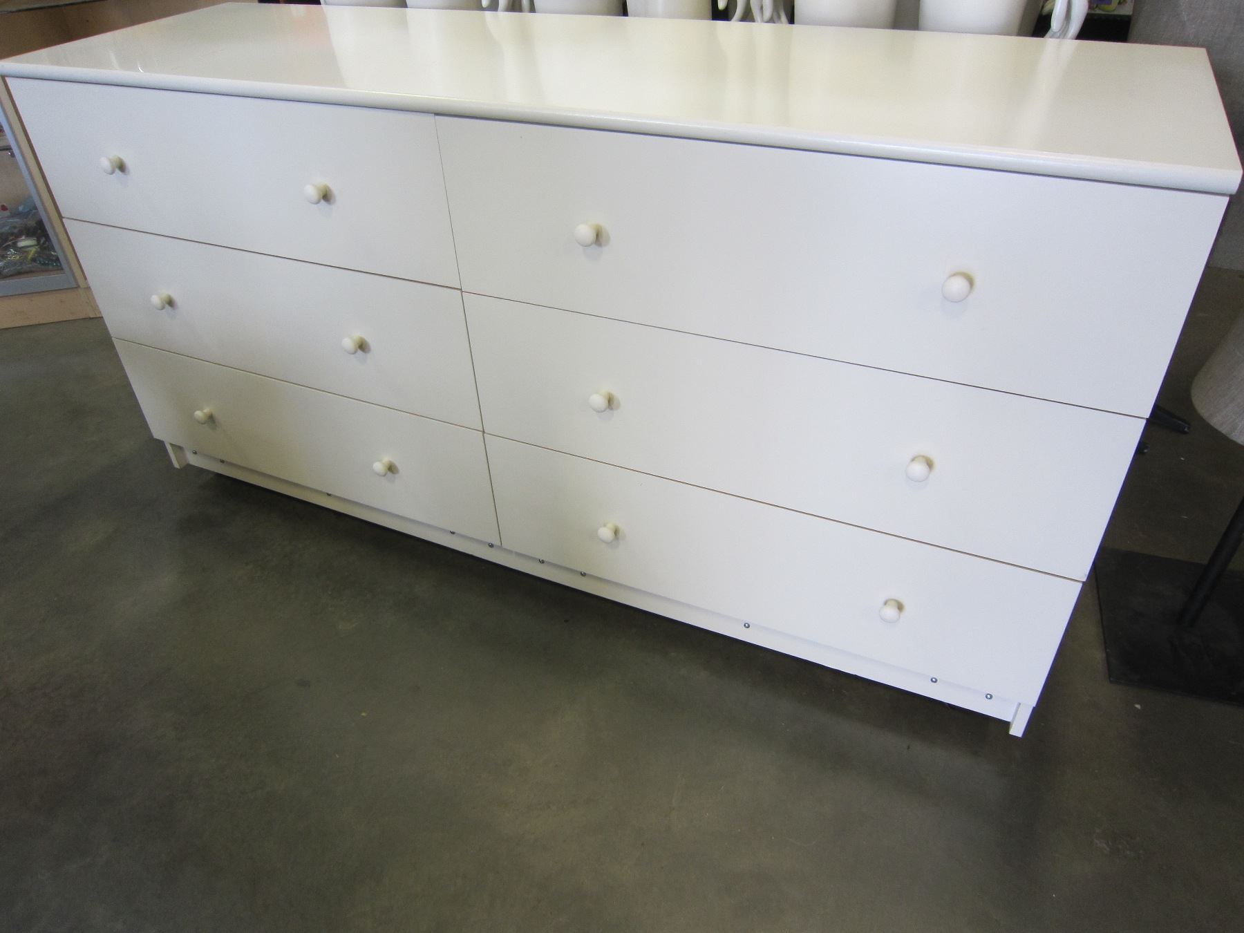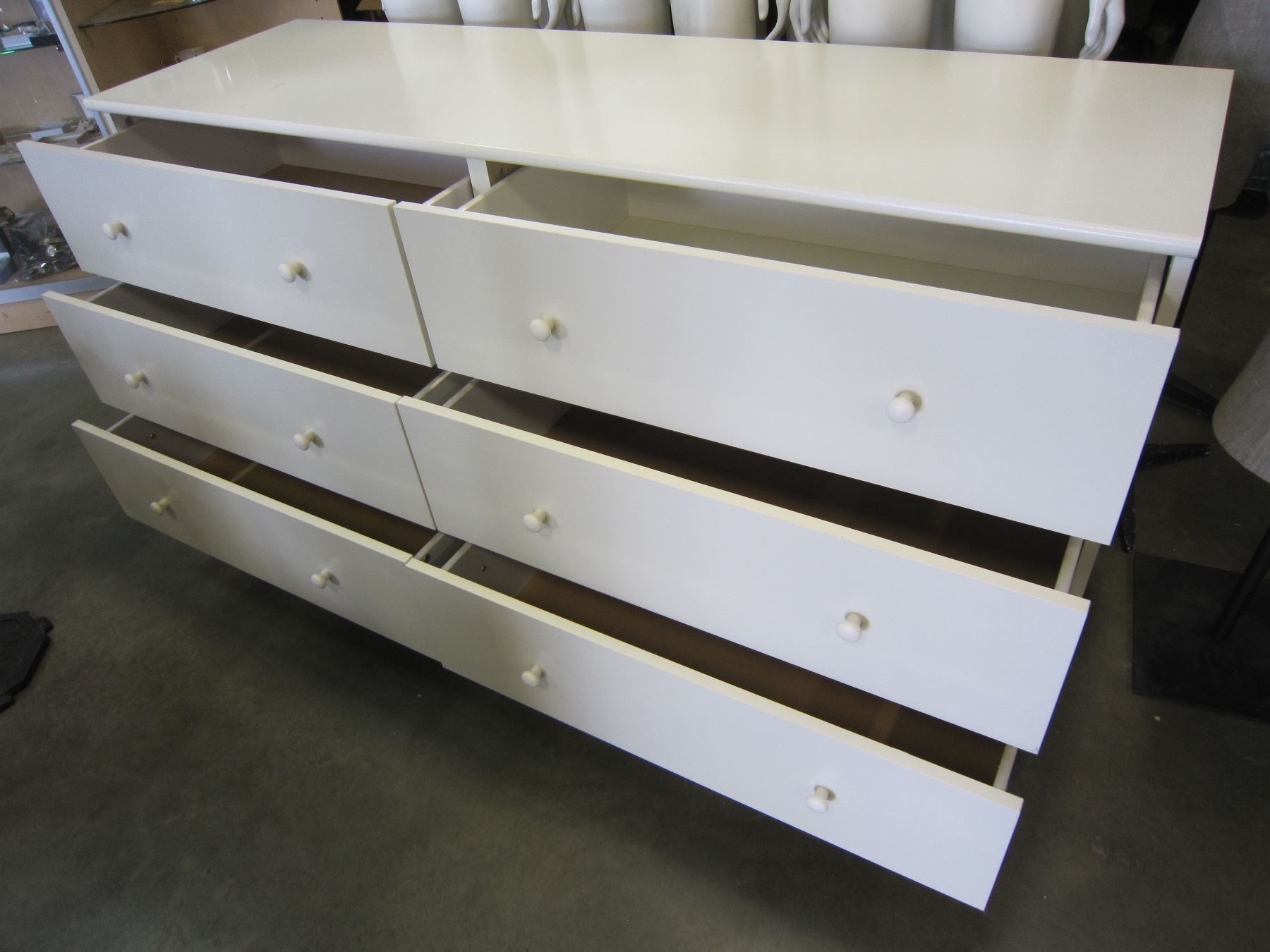 WHITE 6 DRAWER ROLLING DRESSER