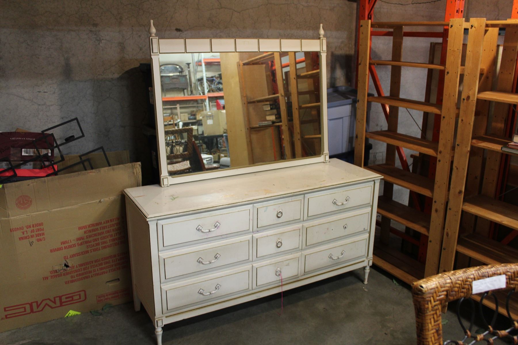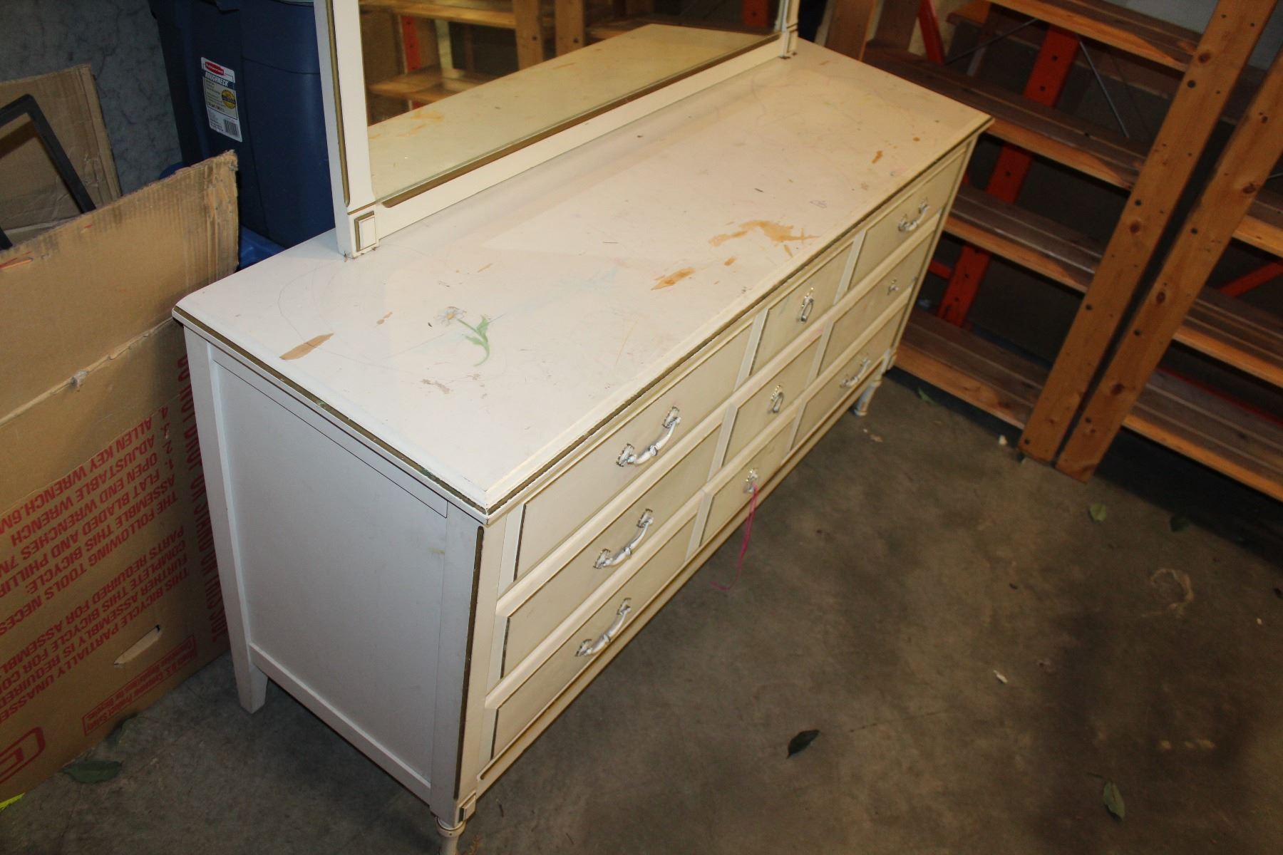 WHITE 9 DRAWER DRESSER WITH MIRROR