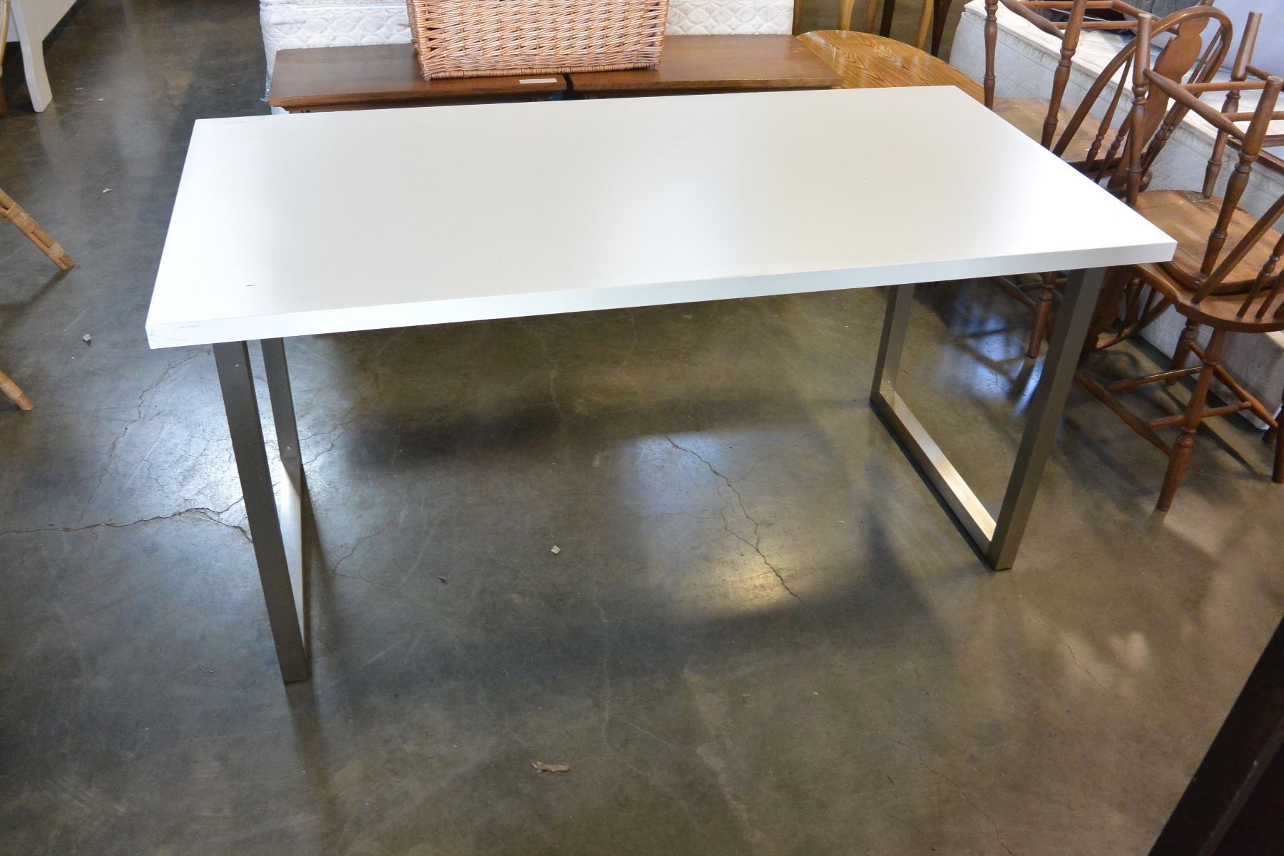 WHITE AND STAINLESS DINING TABLE