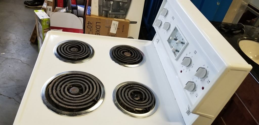 WHITE APARTMENT SIZE ELECTRIC STOVE, WORKING